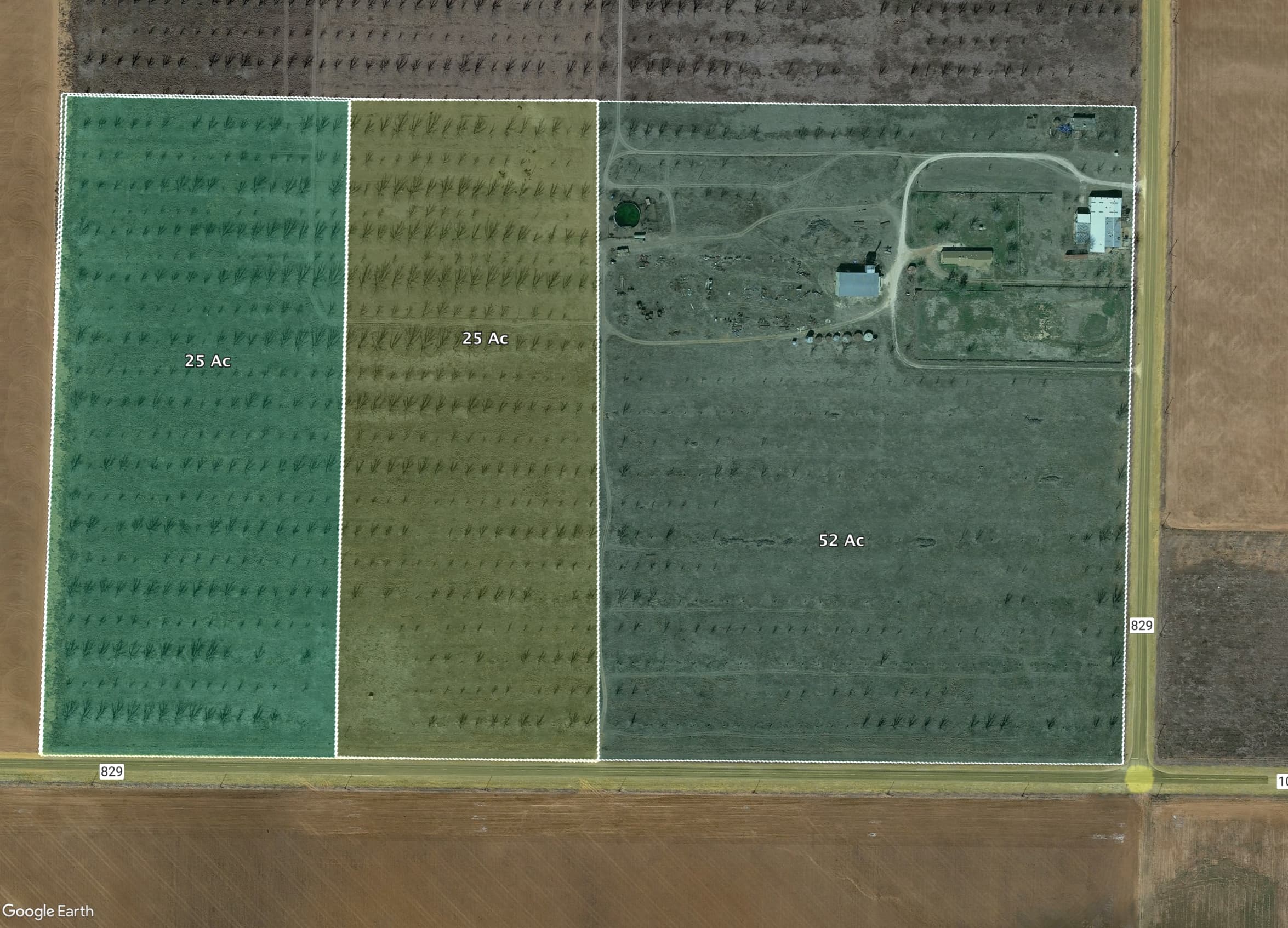 25 Acres of Old Pecan Farm makes a Great Place to Run Cows or Bird Hunt. This tract has No Water-Wells, but Water Should Not be Hard to Find. Road Frontage approx 690' on 829. ADDITIONAL ACREAGE 25 ACRES OR BUY IT ALL W/ HOUSE FOR TOTAL OF 102 ACRES.