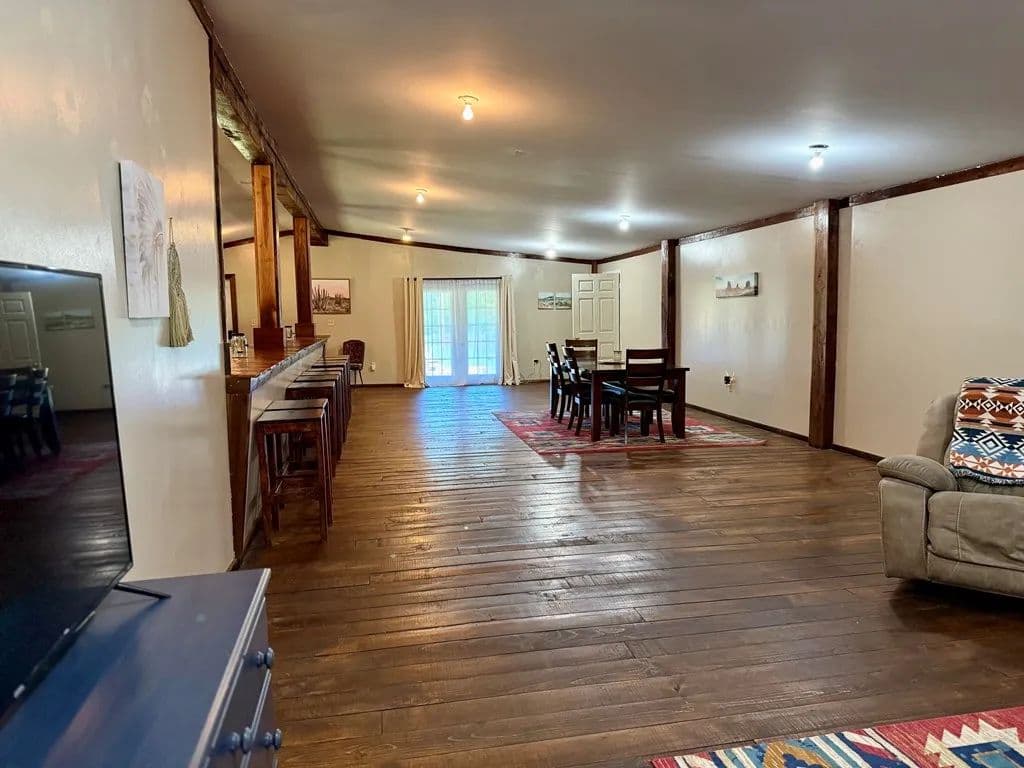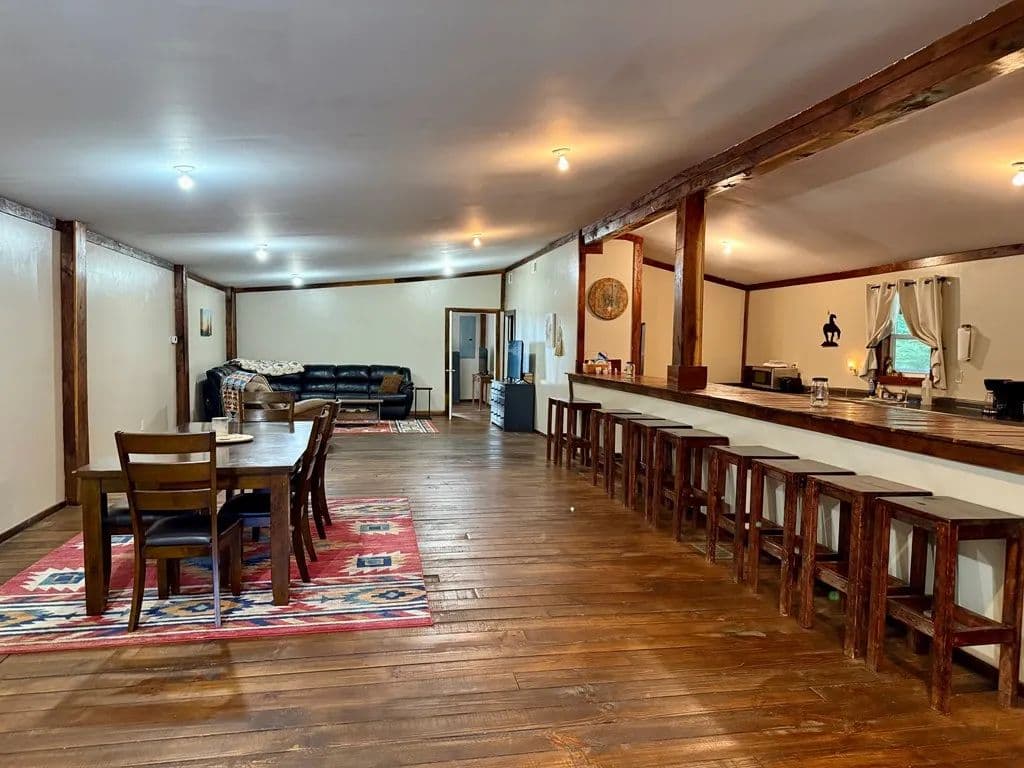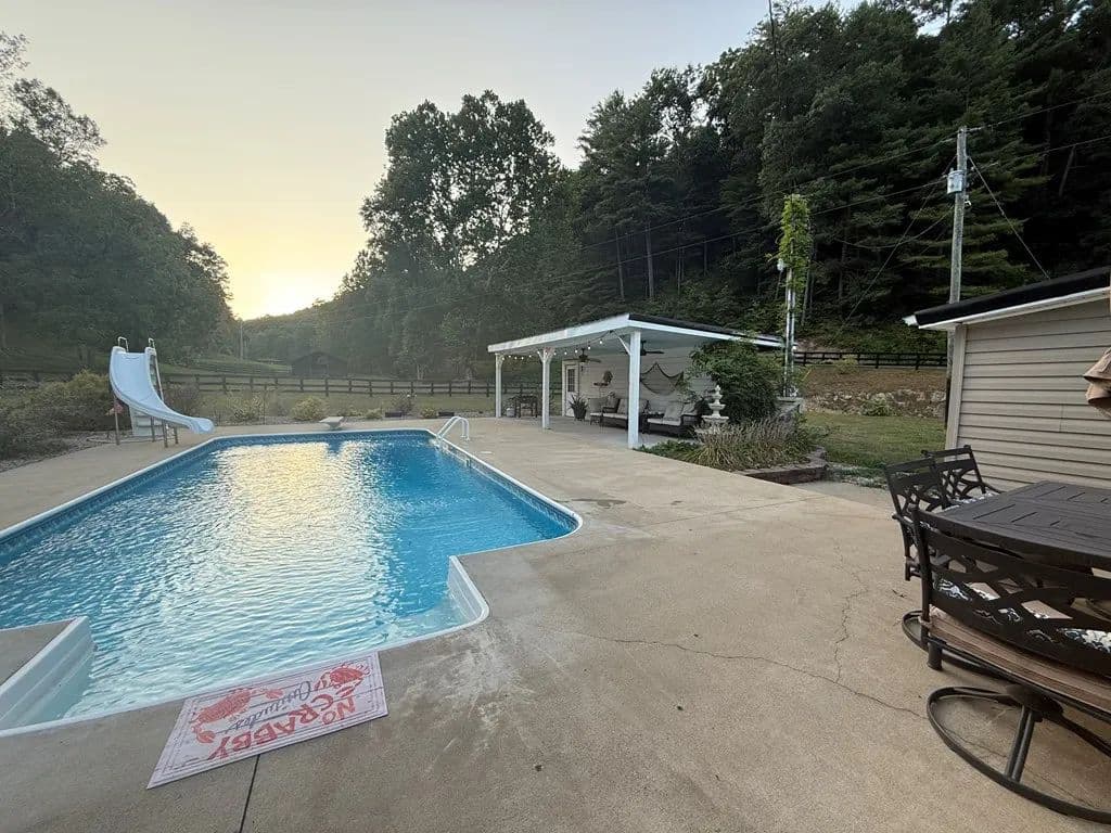 Horse Farm alert! Never before on the market over 385 acres, with over 20 miles of cleared trails for horseback or ATV riding. This property has not been timbered since the 1980s. Featuring a 6 bedroom 2 1/half bath home with an inground pool a 40 x 26 detached garage with heat and air and a 30 x 38 eight stall horse barn all of the pastures are wood rail fenced and separated. This property also has an Airbnb on it that is rented up currently through the fall, which features a bunkhouse, including a full kitchen, restroom two bedrooms and a large living space with 15 camper sites with electric and water and an outdoor stage and arena, there is also a pond and many streams on this property. This property could be used as a horse camp or sold as a camp or hunting lodge. There are large deer and turkey all over this land. You will see those in the photos . The on-site Airbnb is currently already rented to hunters for the fall, and this is transferable to a buyer. This property is 6 par