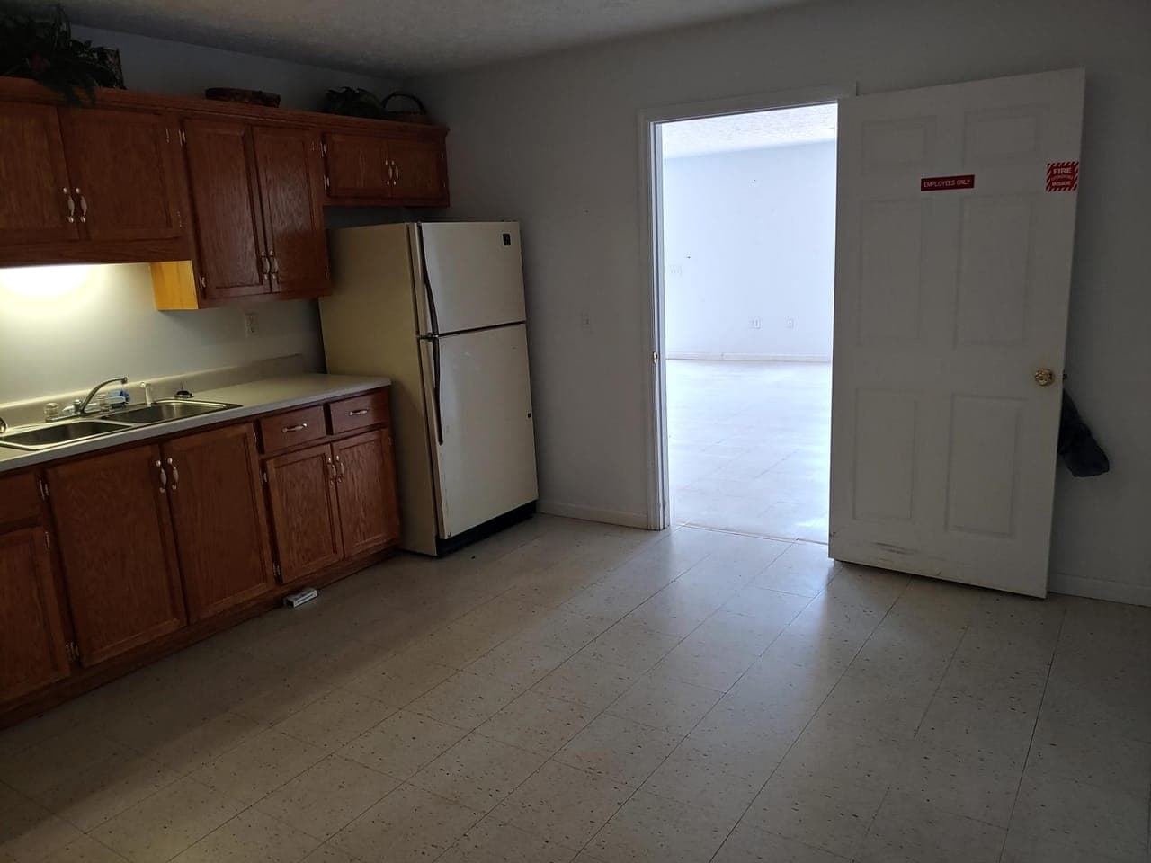 It contains approximately 2,700 Square Feet with large front room (44 feet X 19 feet) and there is a 13 X 14-foot kitchen with appliances and warehouse/storage space in the rear with a side garage door entrance. The warehouse /storage is 44 feet long X 20 feet wide. The HVAC unit and breaker box are in this section of the building which includes hookups for a washer and dryer. There is additional office space with a hallway. There are two restrooms, the men’s restroom is 4 feet X 5 feet and the women’s restroom which also includes a walk in shower is 9 feet X 5 feet. The building has concrete parking area in the front. This building provides many new possbilites for a new business or it is the perfect location to remodel the building into apartments taking advantage of the growing need in the local area.