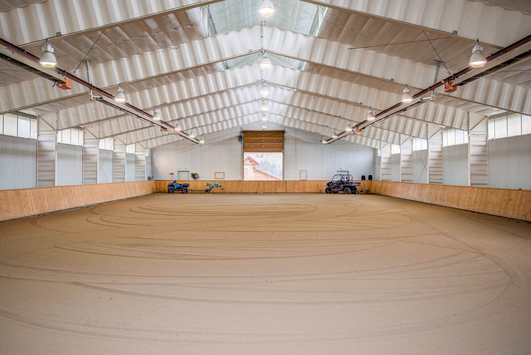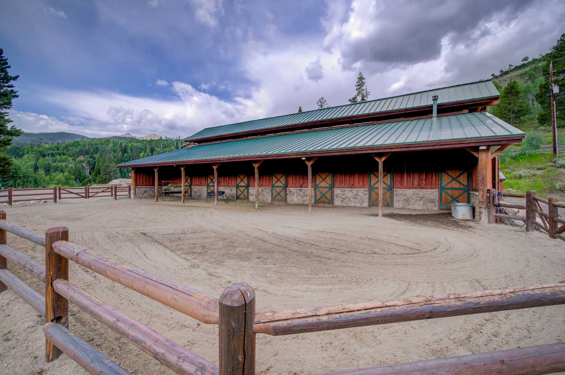 The equestrian will approve of the ranch’s infrastructure, including a 12,800+/- square foot fully enclosed and heated riding arena, an impeccable 10-stall horse barn with automatic drinkers, and miles of internal riding trails. The aptly named Thunder Lodge served as home to the white Arabian gelding Thunder, the Denver Bronco’s famous mascot. This lodge has two additional stalls with turnouts and automatic drinkers. Triple Creek is well-suited for its operations with complimentary infrastructure, including a 10-bay equipment garage, barn, children’s play cabin, ranch manager residence and assorted outbuildings. A significant sprinkler irrigation system waters key areas of the property, and an additional 13± acres of hay meadow are irrigated via traditional flood irrigation.