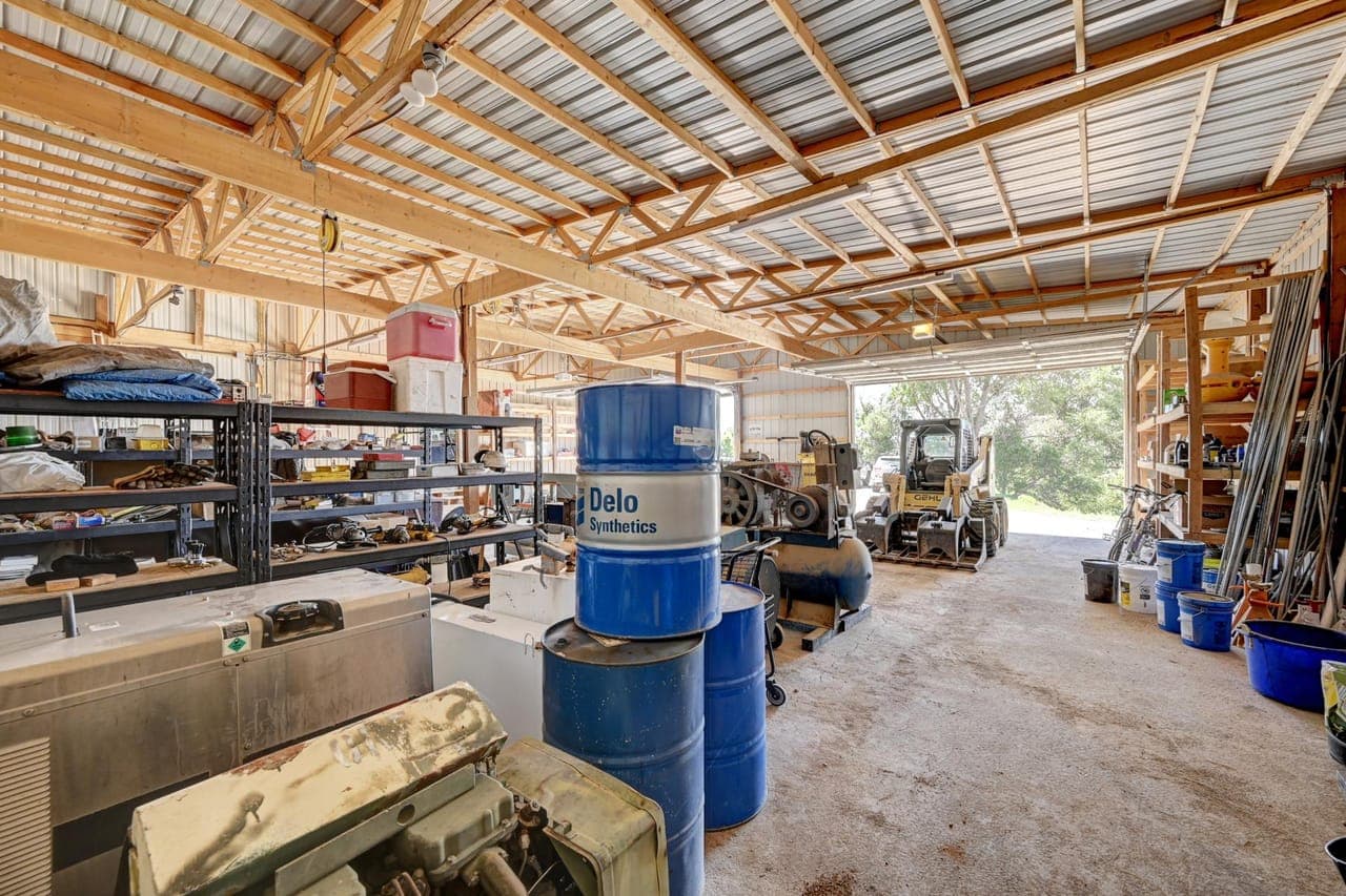 Continuing down this rectangular shaped property is a large 90' x 45', multi-use building that is finished with barn-wood interior and gable ceiling.