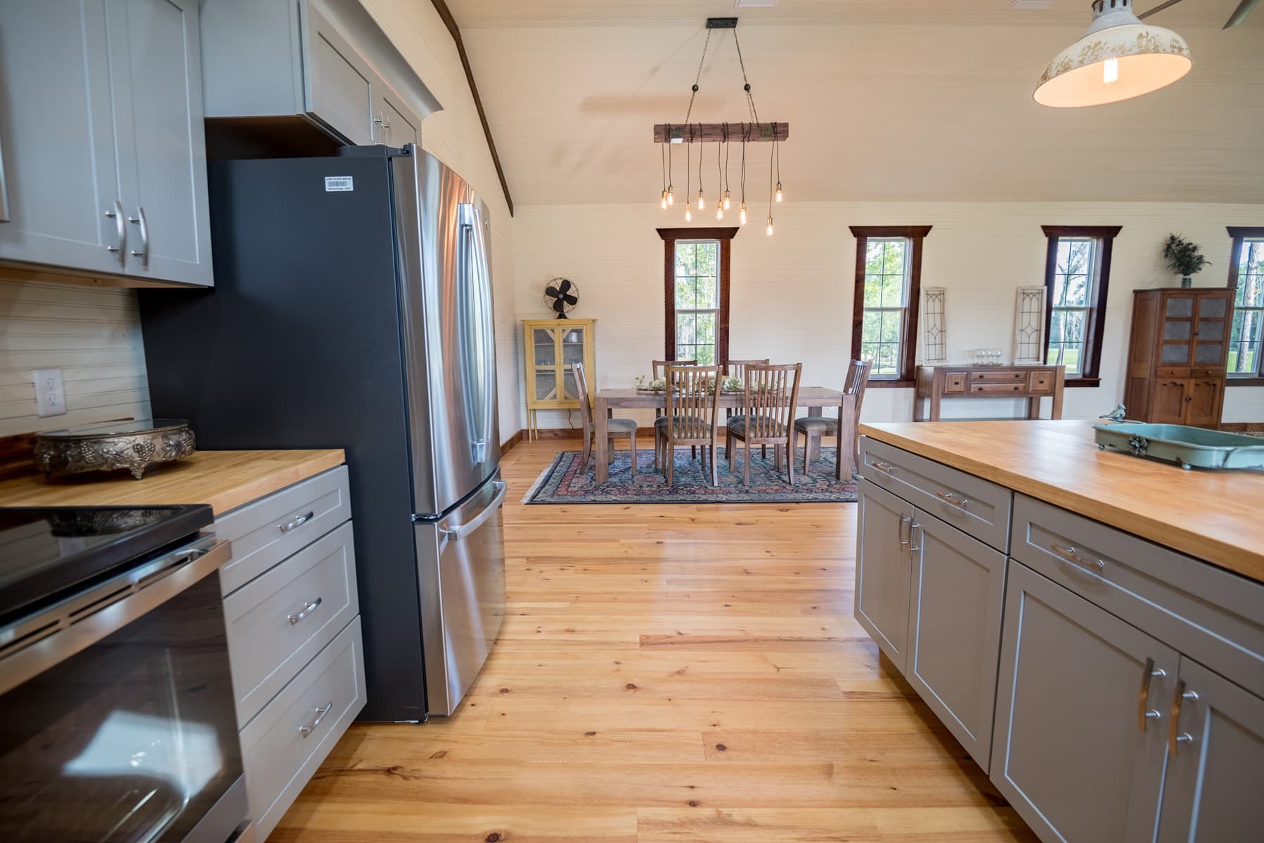 Modern Farmhouse with Old Country Charm! That's what you will find in this one-of-a-kind home! This meticulously designed home sits on 2.6 acres with a pond. The brick steps lead to a wide front porch that welcomes you to sit and rock and enjoy the day. As you walk thru the expansive front doors, an open floor plan greets you. The living space boasts of cathedral ceilings and LED recessed lighting. The home is crafted with meticulous attention to detail and built with high-quality materials and modern features. You will love the sound of boots or bare feet on the gorgeous wood floors! The butcher block countertops in the kitchen offer the farmhouse style and functionality. With a center island that overlooks the living room, meal prep will be easy! When you are ready to relax, the master bath offers an old-fashioned claw foot tub to soak away the day! The home has a generous total living area of 2200 square feet, with a large front porch and a rear covered 2-car carport, providing ample space for outdoor entertainment or quality time with your family.