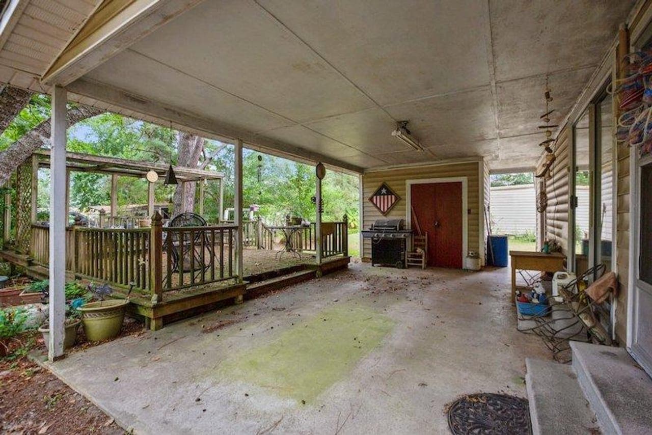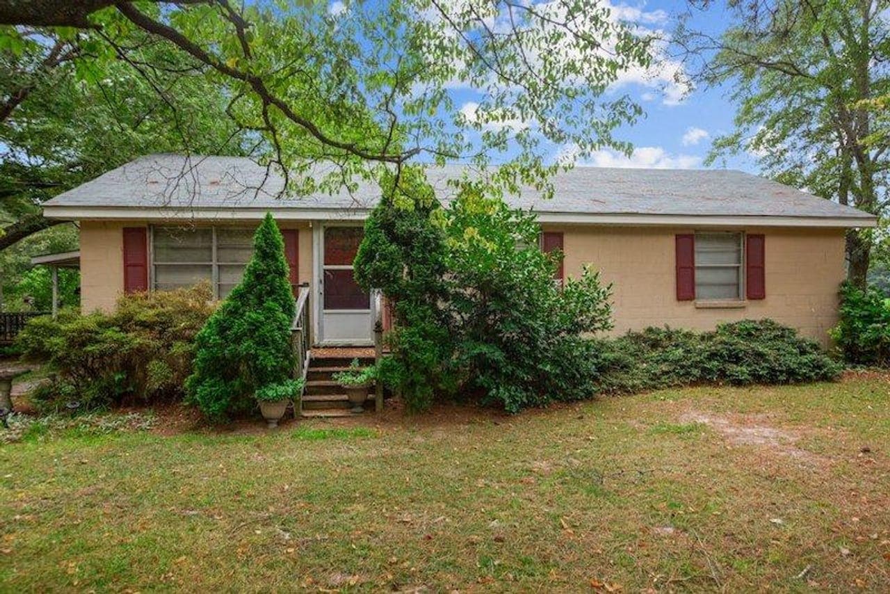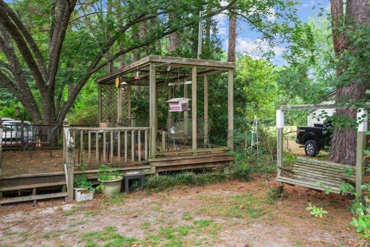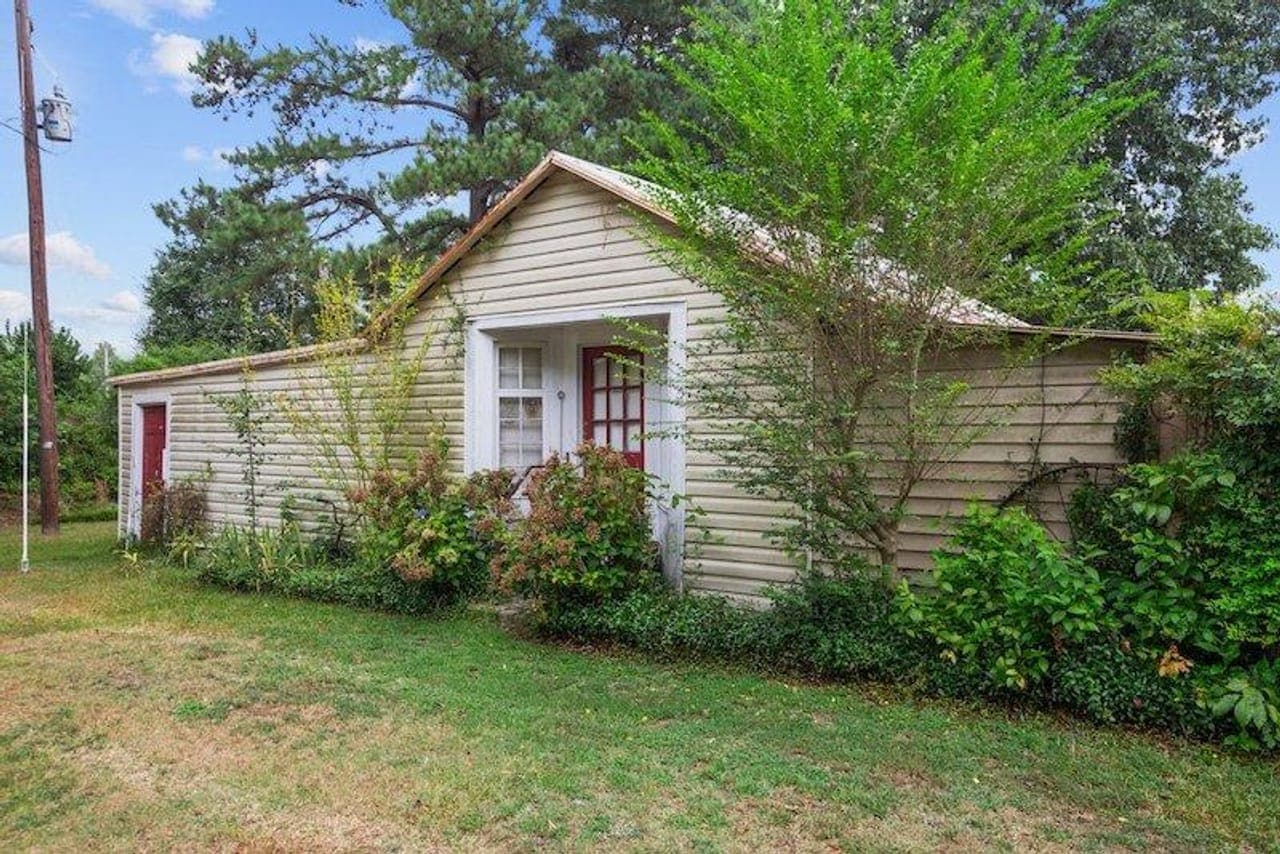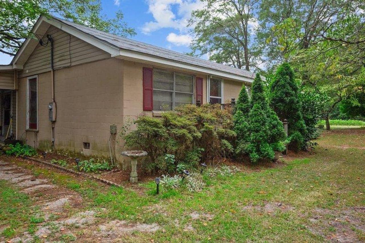 A charming home, built in 1965, with 4 bedrooms and 2 baths with several outbuildings is nestled amidst a serene setting of mature trees creating an inviting atmosphere. The property benefits from city water and sewer lines conveniently positioned across the road from the property.