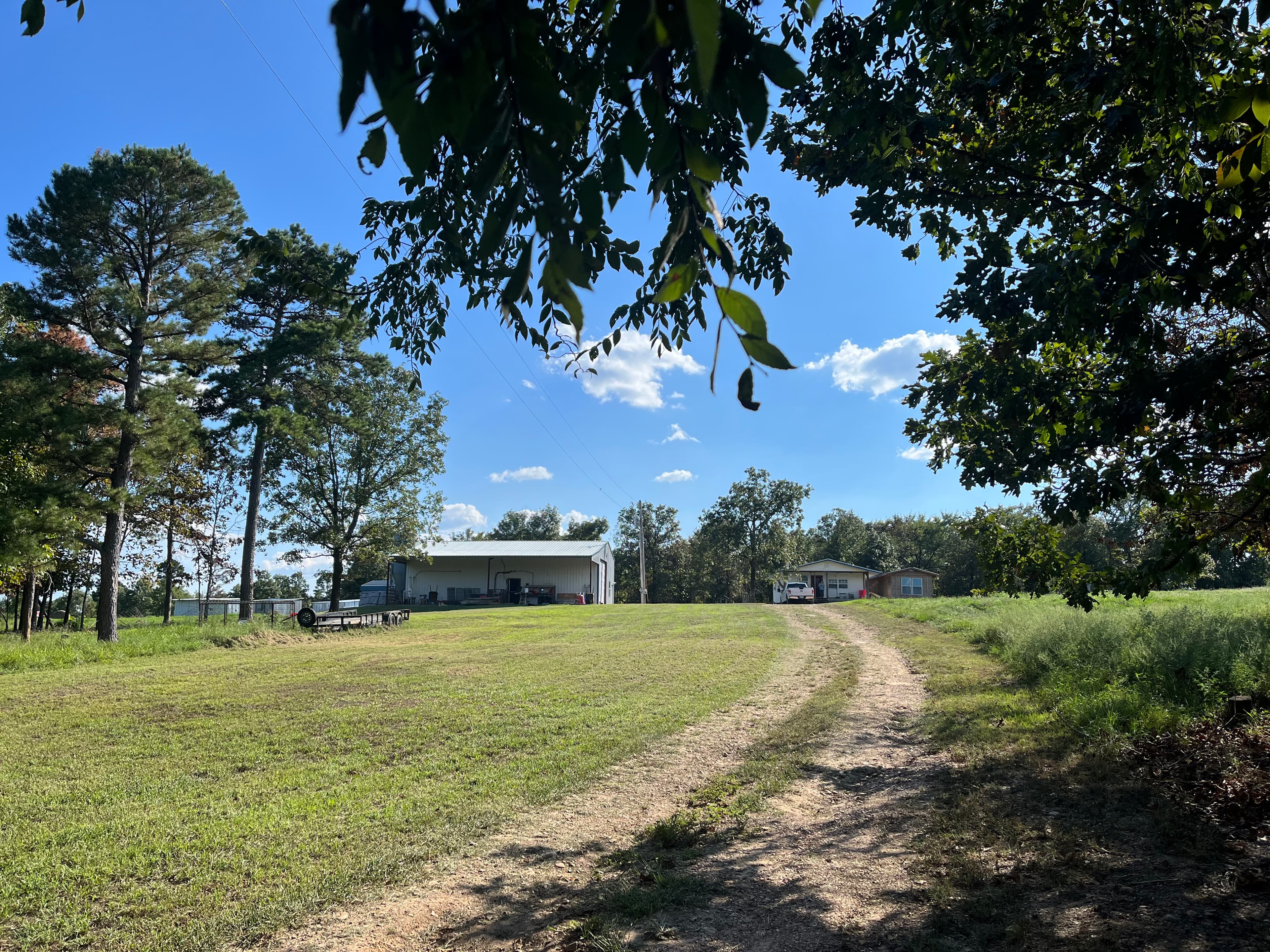 Escape to your private retreat on 35+/- acres of picturesque land, featuring a two-story shop building, a hurricane-resistant 1 bed, 1 bath house, a scenic hay meadow, and two serene ponds. This tranquil property is ideally situated atop a rolling hill, offering breathtaking views and a sense of seclusion. Moreover, it provides convenient access to major cities, with Dalla, Oklahoma City, and Tulsa all within reach.