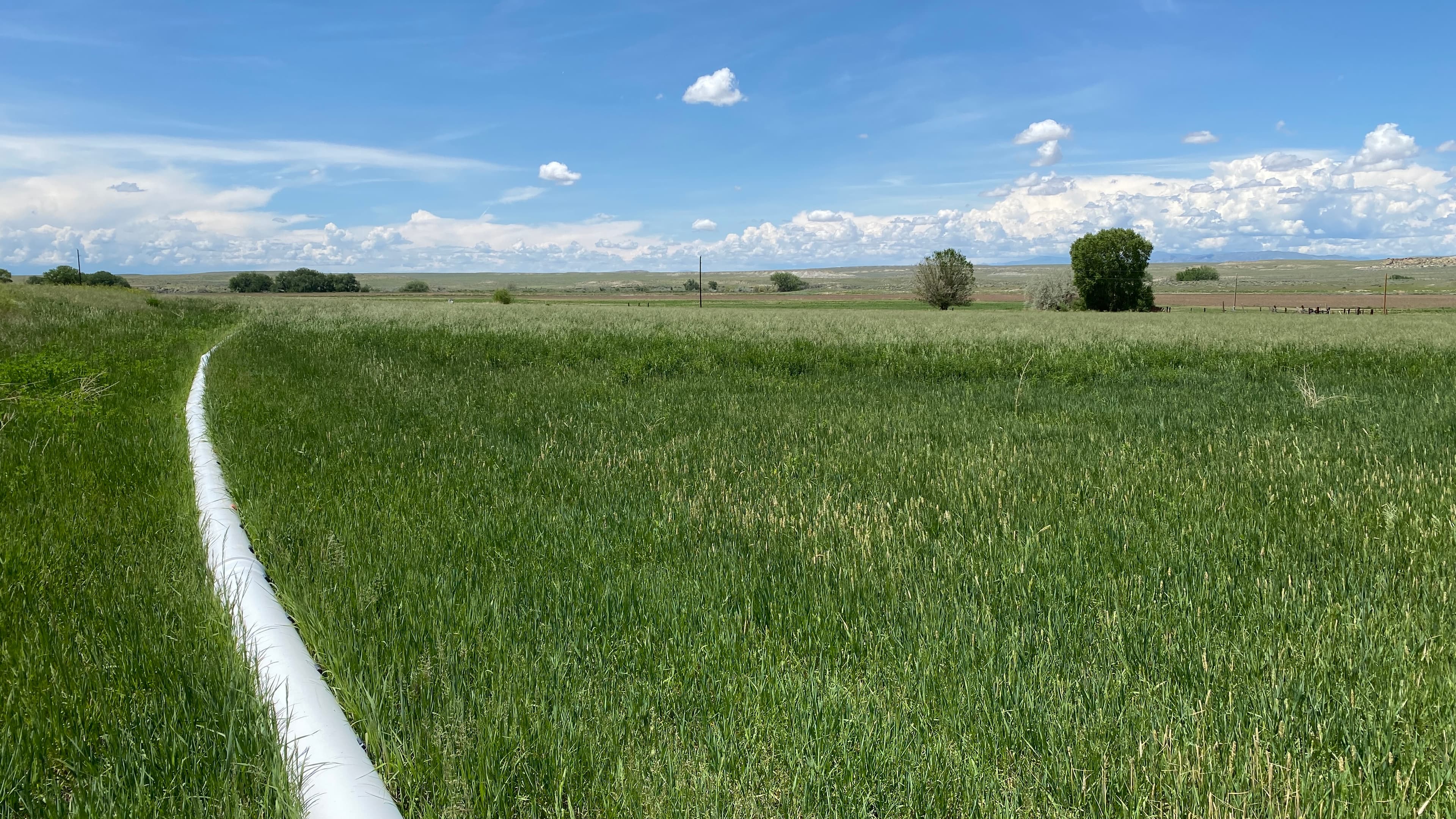 The property has 3 separate hay-producing fields that are irrigated using gated pipes and water from the Midvale Irrigation District. The west field is mostly grass with some alfalfa; the east field has a lot of alfalfa, but also grass; the north field is a newer stand of mostly alfalfa. The current harvest amounts are not known but they should be typical of the area respective of the type of forage.)