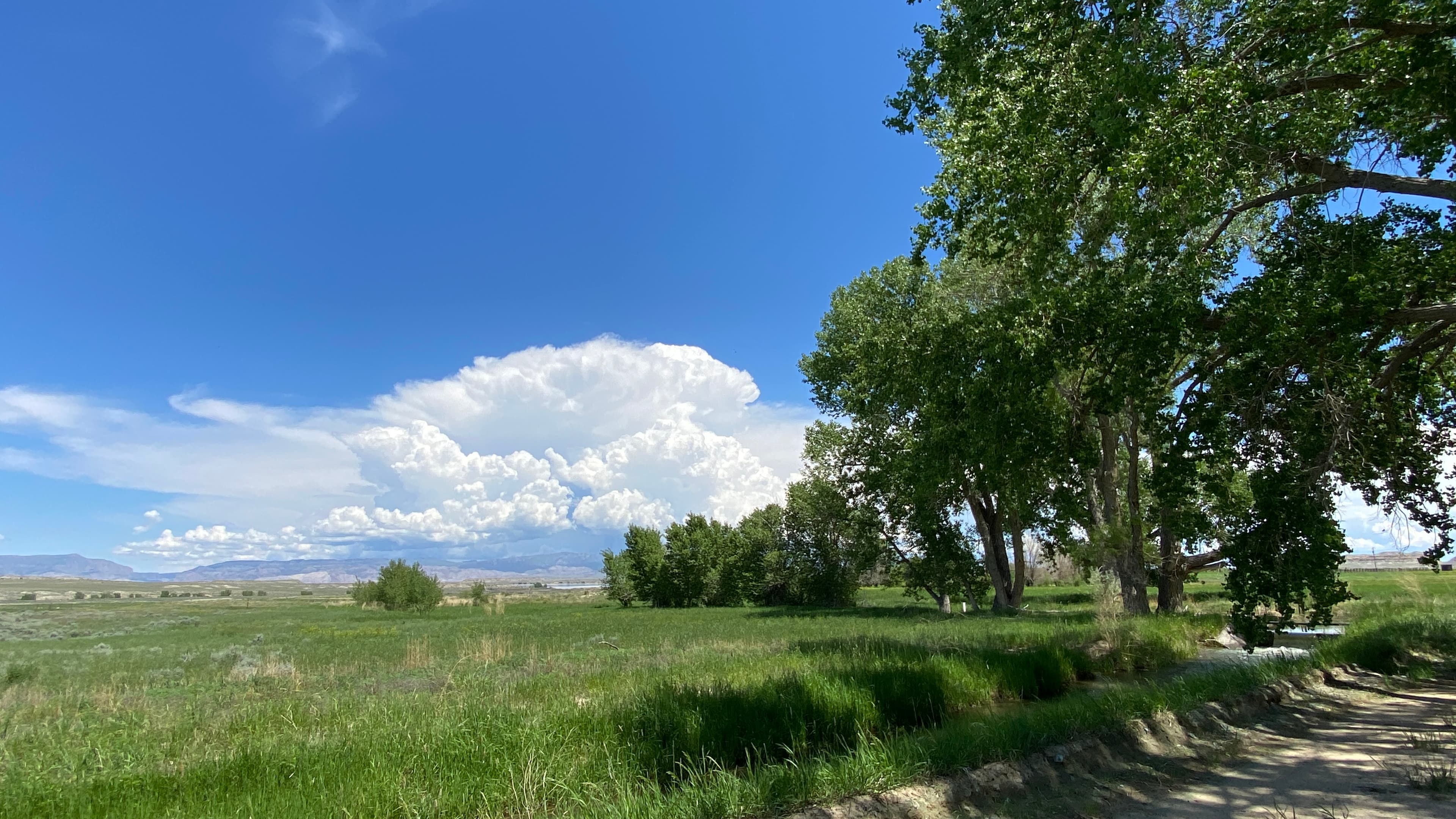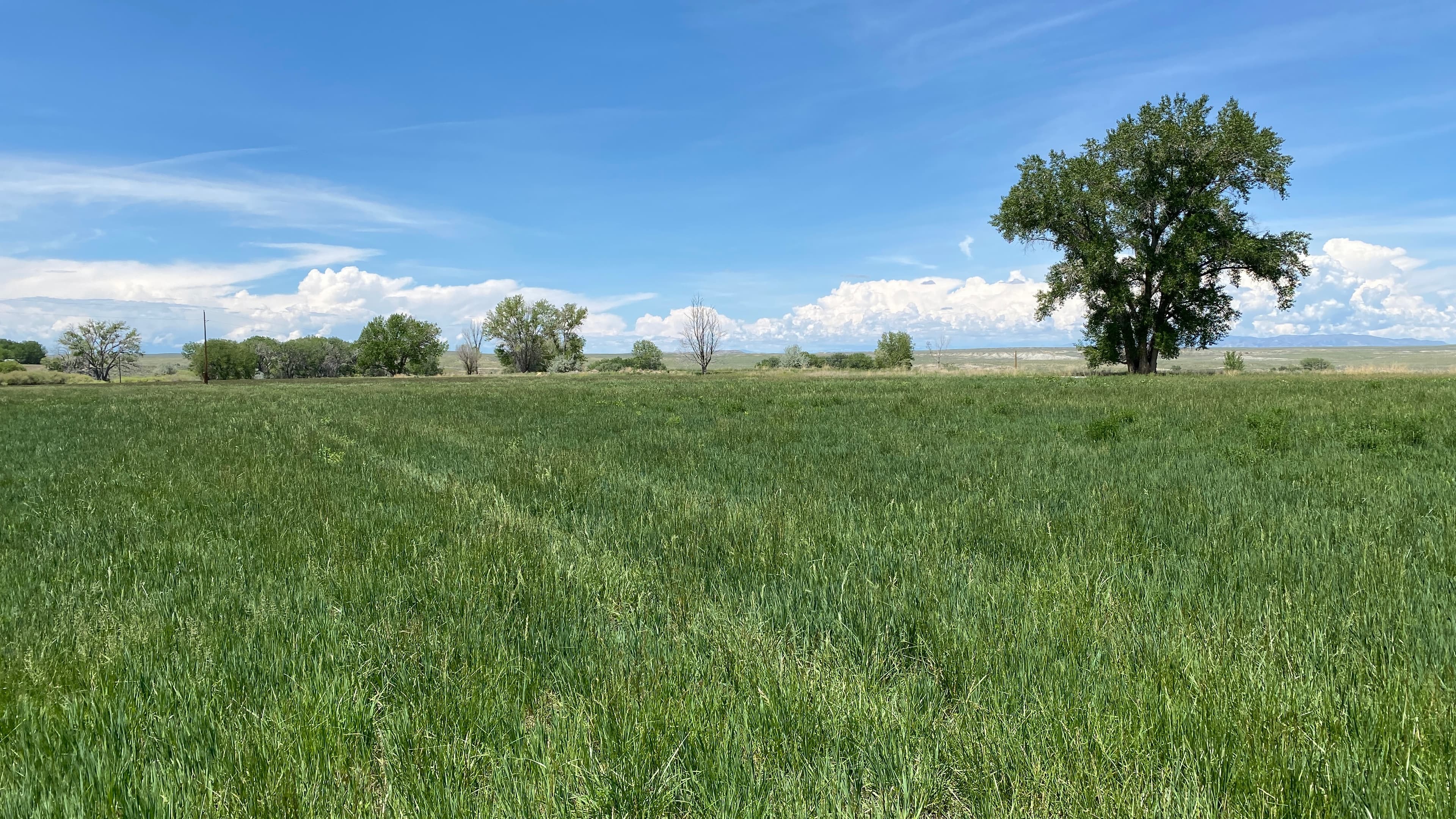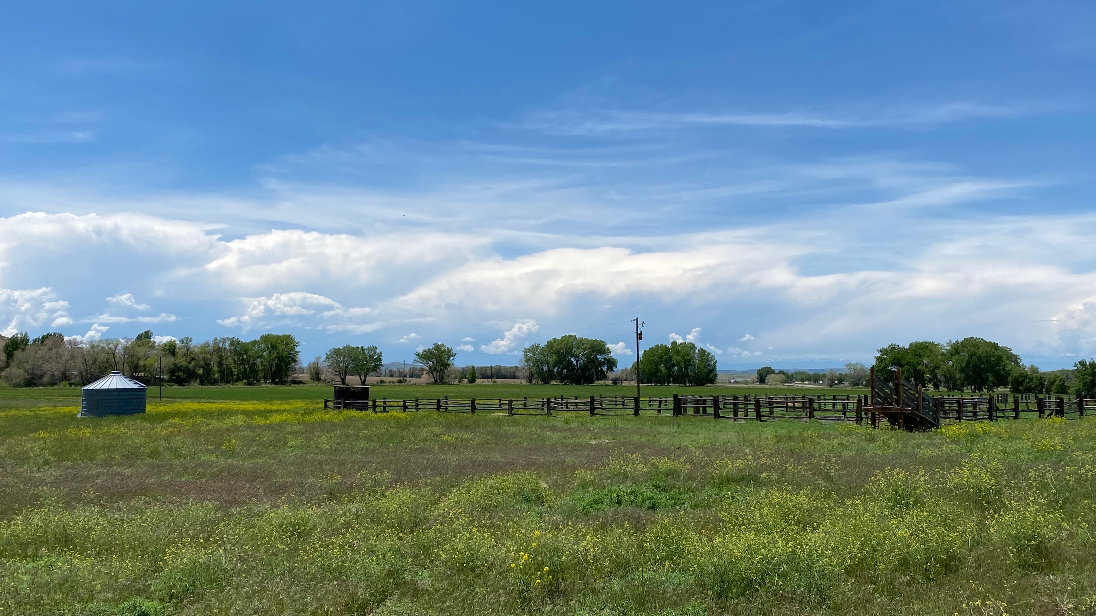 About half the property is more or less native with small gullies, gentle rocky outcroppings, and wetland areas filled with towering cottonwoods and other native trees. The Midvale Irrigation Ditch runs through it providing stock and irrigation water during the summer months while it’s running. There is an older set of corrals and a smaller granary, both located in an area that would make a very nice building site. The views from this location are awesome and the topography appears well-suited for building. It’s been a while since any livestock have used the property, but it would make a great small acreage cattle and/or sheep operation, or even an equestrian operation would do well there.
