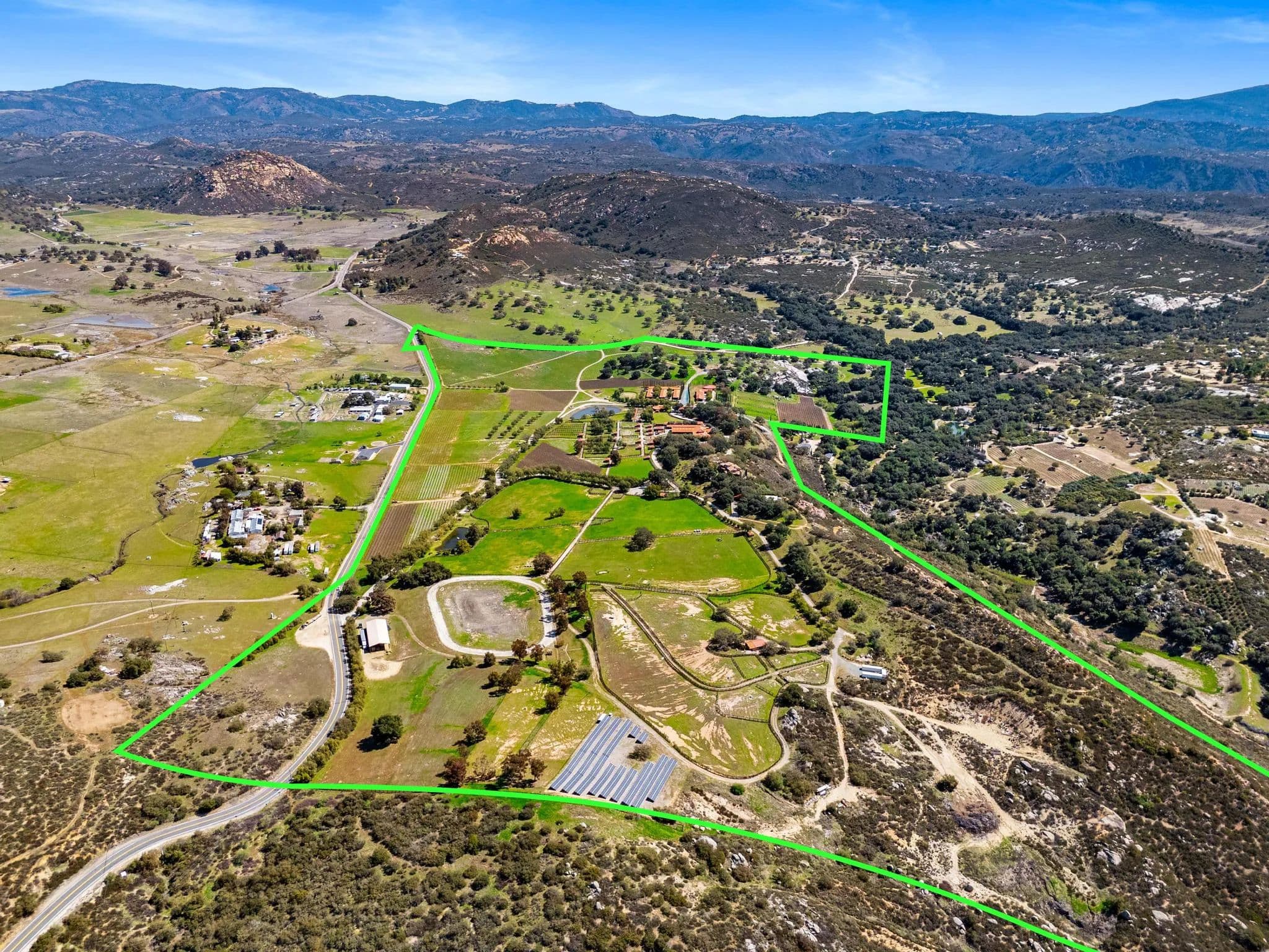 Other notable features of this ranch include: a professionally developed water system with eight operating water wells contributing to approximately 420,000 gallons of stored water and comprehensive irrigation system, one of the largest independent solar fields in San Diego County, sizeable workshop with 8 bays for vehicle storage, well maintained roads and paths allowing for ease of navigation and future use, three seasonal ponds which capture rainfall, and a prolific family fruit orchard.