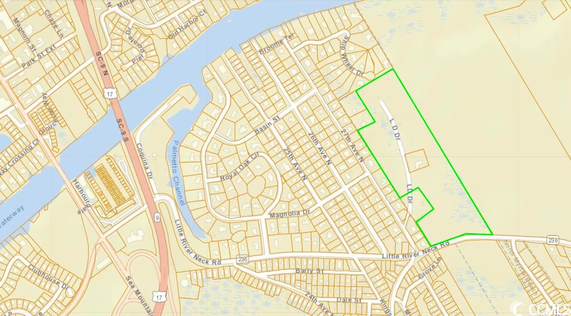 Vacant land in North Myrtle Beach. This approximately 25.5 acre tract has lots of possibilities and is mostly cleared. Over 670 ft (approx) of road frontage on Little River Neck Rd and additional access at LD Drive off of 27th Ave N. All this in a great location near the beach and waterway.