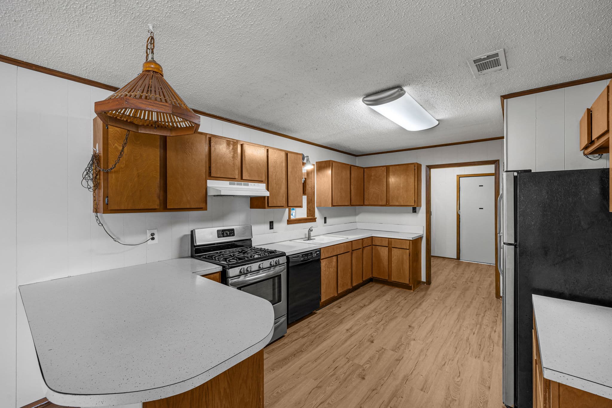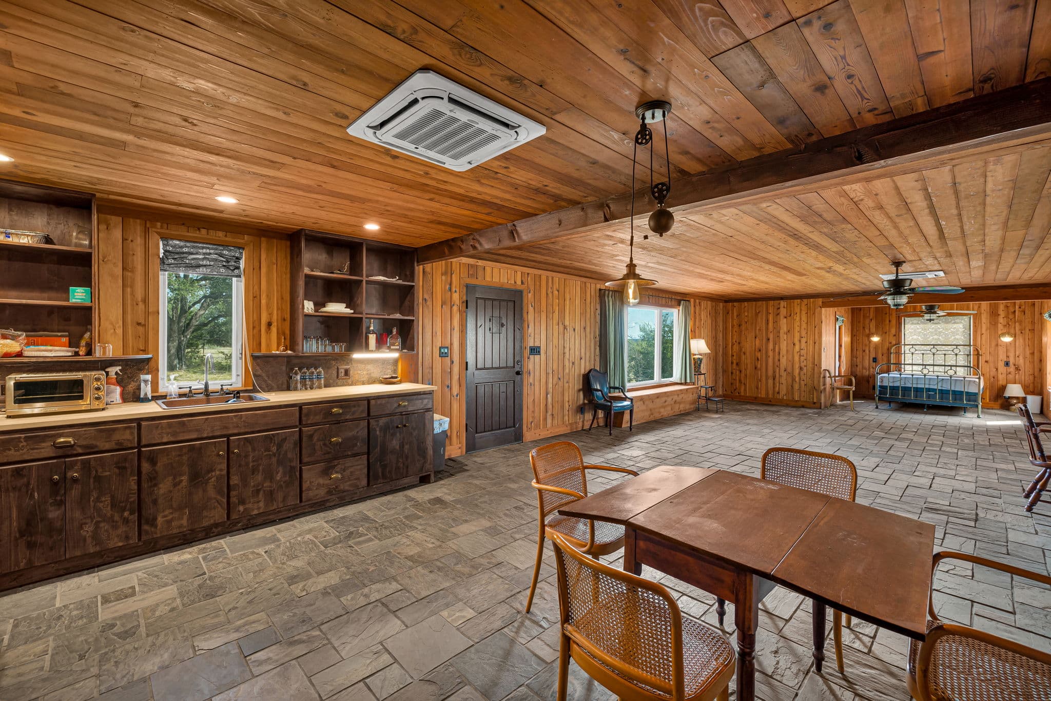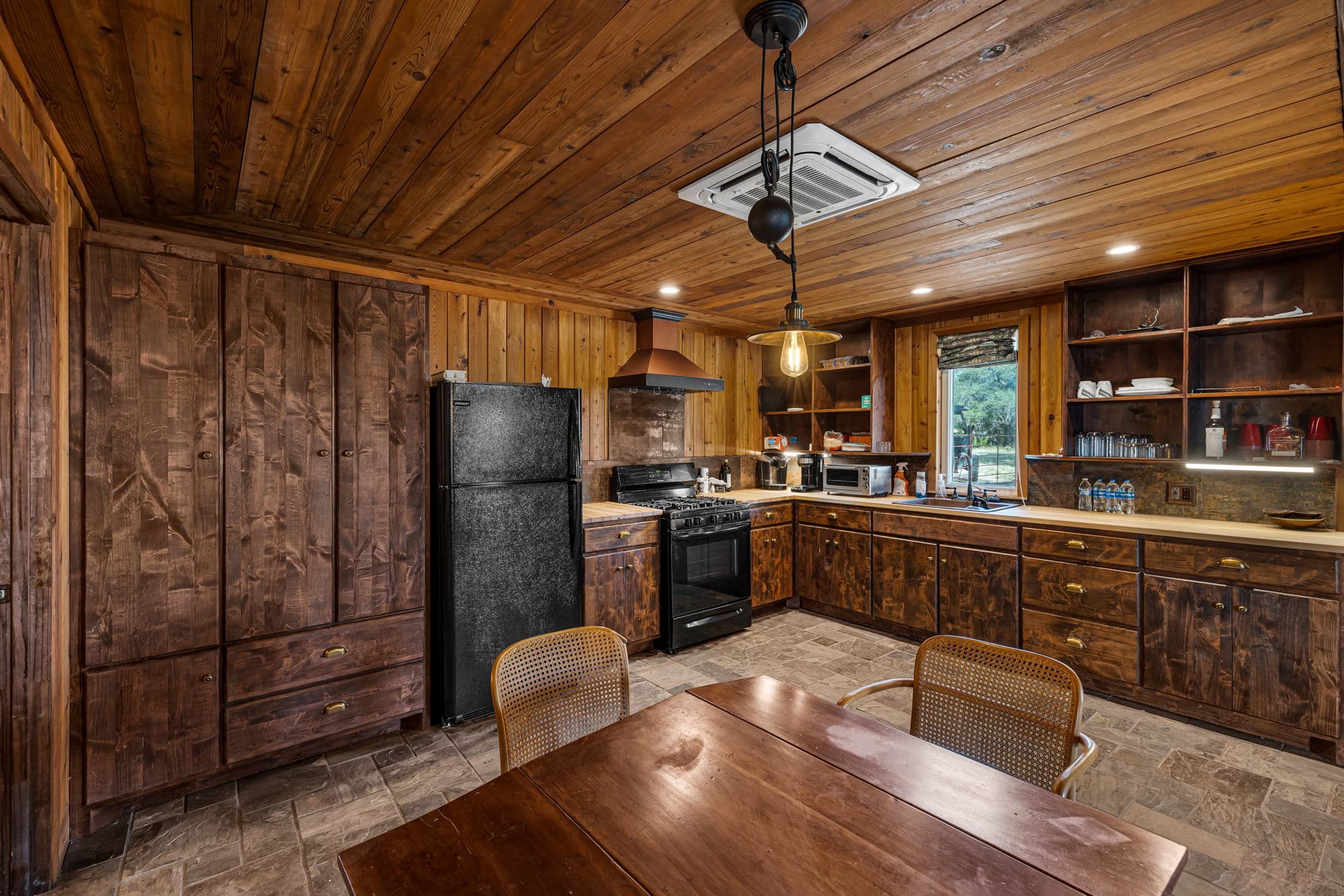 IMPROVEMENTS: A main house and a cabin make up the sleeping quarters on the ranch. The main house is a ranch style home on slab foundation comprised of 3 bedrooms and 2 bathrooms. Approximately 2,600 square feet it has multiple living areas, kitchen dining, full kitchen, separate washer/dryer room, and an office. Recently updated with new "life proof" floors this house will comfortably sleep 10 or more adults and has an indoor fireplace for the colder months. The main house is fully high fenced has it's own dedicated water well, carport, and garage outbuildings. The cabin (~800 square feet) overlooking the pond is one large room with kitchen and bathroom. Currently 4 bunk beds make up the sleeping availability but much more could be added. Slate flooring, wood paneling, updated kitchen and bath highlight the great features of this cabin. This ranch has two metal barns with covered parking areas and garage areas with roll up metal doors. All the improvements have electric running to them and a SW Electric Co-op line runs diagonally through the middle of the ranch. Pipe pens with separate traps and loading pens are located at the center of the ranch for easy pasture rotation and livestock handling.