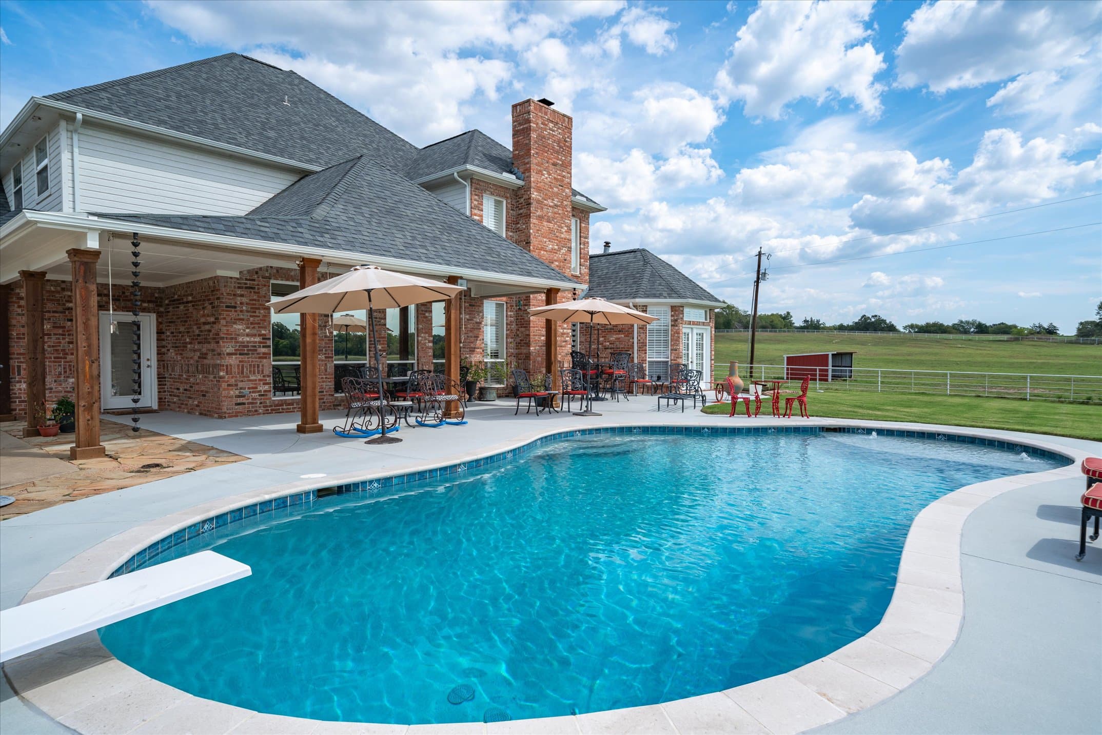 The property with the WOW factor you have been dreaming of! This spectacular 50+- acre property features every upgrade you would ask for as an equestrian, hunting, cattle, and recreational lover! With no expenses spared on the home or property, it highlights stunning 2 story home w classically modern charm & elegance with a pool sitting atop a hill overlooking the property. An entertainers paradise w ideal kitchen & huge island, dreamy 1st floor primary suite, 2offices, 2 staircases, massive closets & so much architectural interest! 2 horse barns, 3930 SF workshop w concrete &electric, concrete drive, covered parking, lit arena, pipe fencing & cross fencing, hot walker swing, RV cover or hay barn, 2 ponds, and excellent mix of pastures & woods. 2025 SF custom horse barn w 5 oversized stalls, tack room, party barn or entertainment area & office that could be used as a guest quarters. Second horse barn includes additional6 stalls, near multiple sorting & working pens, and round pen.