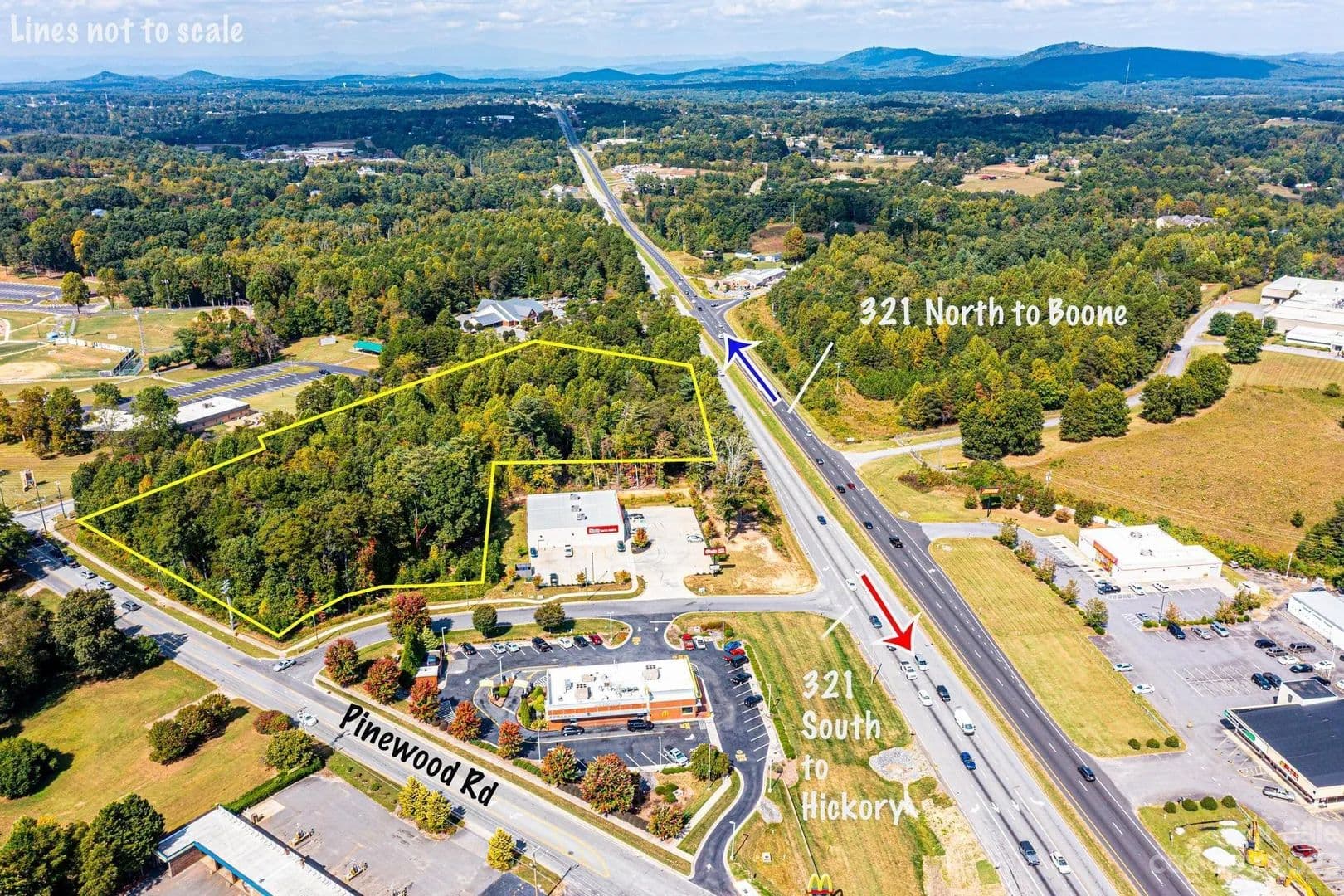 Incredible visibility along US 321-S in Granite Falls, offering 2,000 feet of road frontage on 4 sides and next to a major intersection with stoplight. NCDOT Daily Average Traffic estimate is over 30,000 vehicles/day. Can be subdivided to 1-acre parcels fronting Hwy 321 for $450,000 each. Zoned HB, for Highway Business/General Commercial development. Located adjacent to McDonald's and O'Reilly Auto Parts, this parcel is perfect location for gas station, business complex, or can be down-zoned for multi-family house development. Deed restrictions in place prevent certain restaurants from locating here, see MLS Docs for full restrictions.