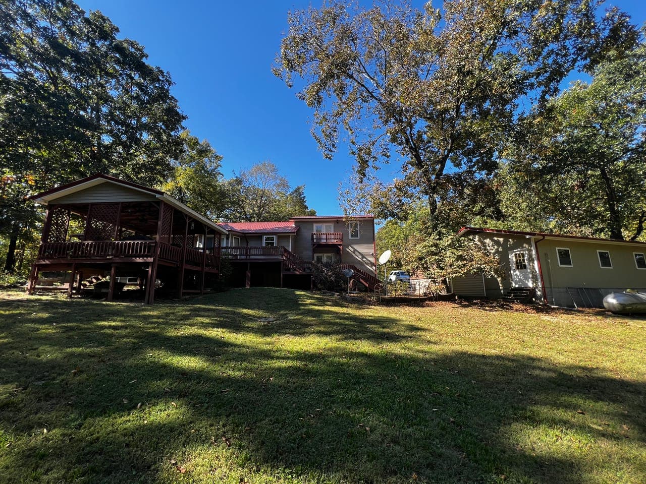 This unique listing can appeal to just about every buyer looking for the perfect home. Lets start with the 17.1 acres that backs up to the Corp of Engineers and just 1/2 mile to possum creek boat ramp. Pulling up to the this beautiful tri-level home is a circle driveway with a flag pole and oversize 3 car detached garage. There is an underground dog fence also. The back of the home has multi layered decking with covered area with a hot tub. There is a HUGE 18.6x17.5 family room, living room, kitchen, dining room, 3 bedrooms, 2 baths, laundry room on the main floor. The large master and master bath is on main level. The upstairs level has another room perfect for another family room or could be another master bedroom and has a half bath. Lower level has a rec room, bedroom and bath. With 3,198 Sq feet, this home would be great for a single family or for the family that needs a few extra spaces for extended family. This home has been well maintained with new roof in 2018, and the Geo-thermal system. This is a gem. Don't this this one pass you by. Give me a call today!