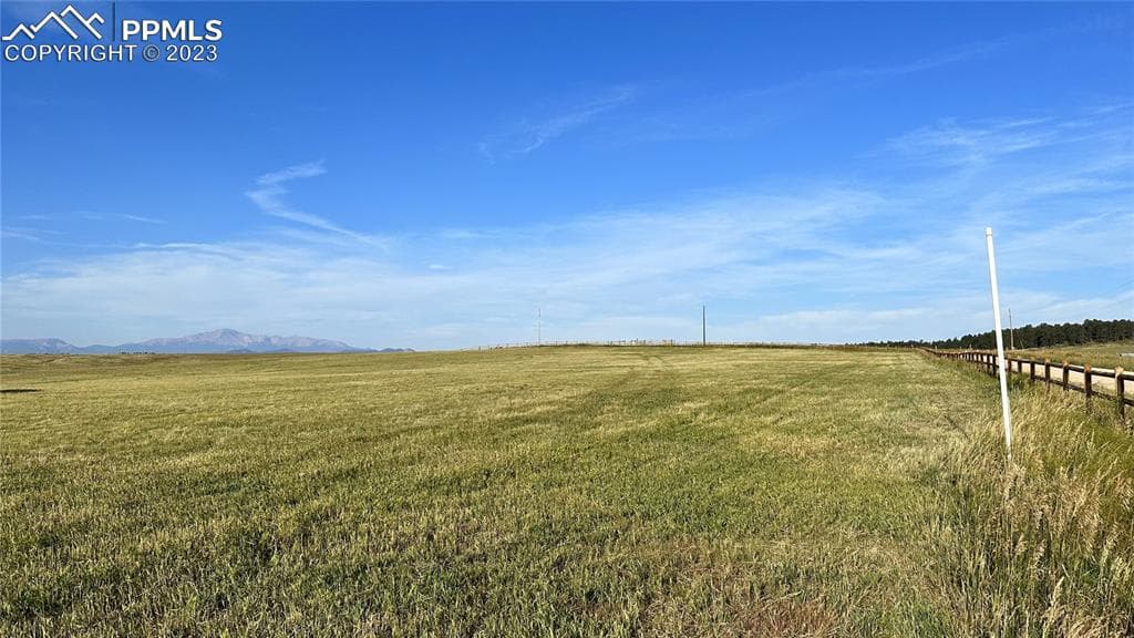 Nestled against the majestic back-drop of the Rocky Mountains, this remarkable piece of land is 1 of 7 lots offering an unparalleled opportunity to build your dream home in the heart of nature's grandeur. Situated in a pristine location with awe-inspiring views of Pikes Peak and the Front Range, this property is extremely private yet close and convenient to shopping, banks, golf courses, and more! Located 10 minutes East of Hwy 83 with quick access to Monument, Colorado Springs, Denver, and the Colorado Horse Park in Parker! The topography of this lot presents the exciting possibility of a lower-level walkout. In addition, this lot has the unique advantage of water rights and the South and South West exposure for abundant passive and active solar. This neighborhood will allow for 4-H animals and horses! (All the lots in this brand-new exclusive subdivision can be described with the same attributes!)
