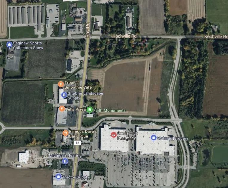 Discover a fantastic opportunity to acquire vacant commercial land in Saginaw County! This prime Bay Road location boasts 500 feet of frontage at a signaled intersection on the corner of Kochville & Bay Road. 4.5 acres of land with neighbors the well-known Sam's Club & Walmart. SPLITS are available for your convenience. All utilities stub to site. Situated near bustling shopping centers, eateries, top-rated medical facilities, and SVSU, this property offers endless possibilities for businesses seeking maximum exposure in Kochville Twp. Reach out to Century 21 Commercial Team at 989-921-7002.