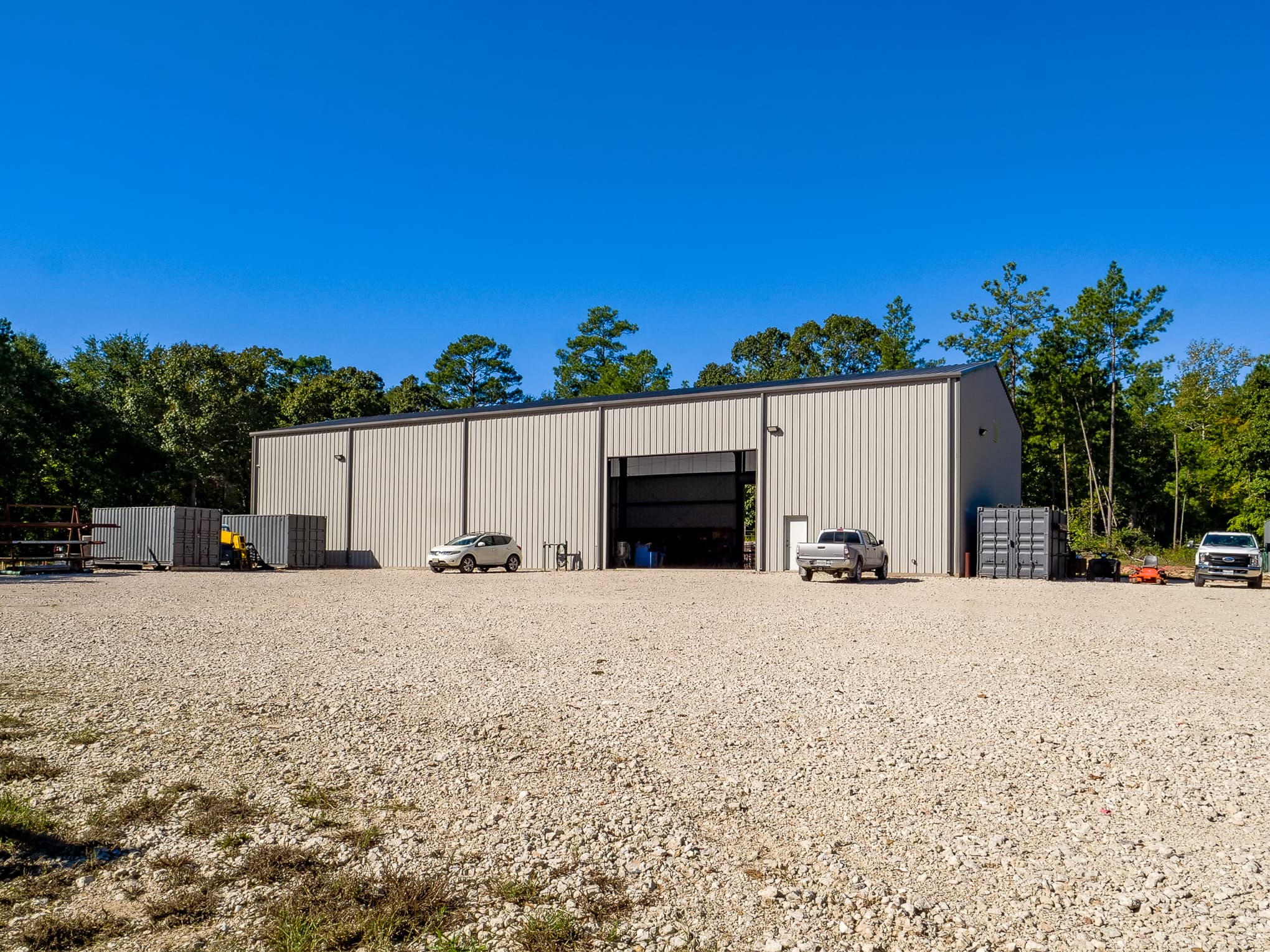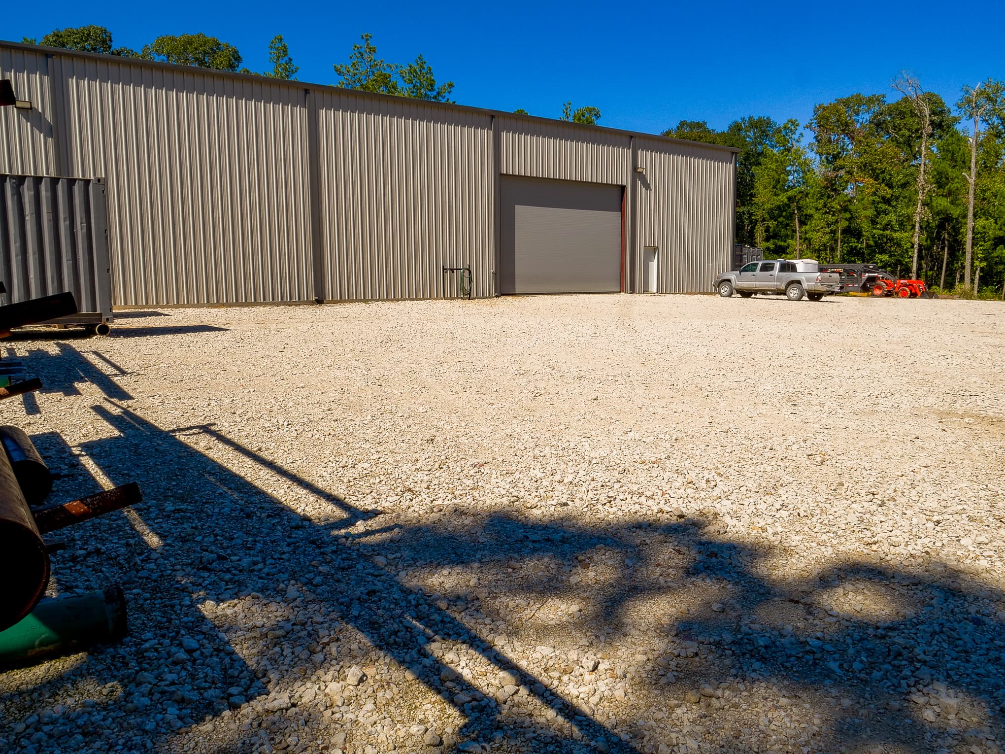9 acres partially wooded with a small pond and huge shop/barn. Aerobic and well (2022). This is an excellent opportunity for your business, and/or you could build a home right on the property! The commercial building was built in 2022. The building is 50’ x 125’ x 24’ eave height. Designed and engineered to accommodate a 10 ton overhead crane. It has (2) 23’ wide x 16’ tall automatic roll up doors. 6 inch roof insulation. Interior walls partially insulated and covered with 3/4” plywood. Security camera system. Excellent high bay lighting. Great exterior lighting with timer. 400 amp 1/ph electrical service with 30hp 3/ph American Rotary converter In shop. Additional 200 amp electrical service at the front of the property with underground electrical to the gate for future automatic gate opener. Pipe front fence and entranceway. (3) 20’ and (4) 40’ storage containers. A rare find with the perfect acreage size for your custom home with the shop to use for your business (or hobby!)