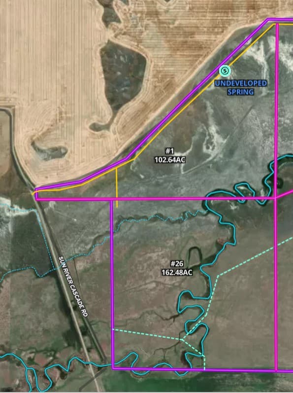 This 265+/- acres is accessed directly from the Sun River Casacade Rd. It consists of seemingly endless pastures containing tall native grass, privacy and views are in abundance. Multiple water sources are spread out throughout this offering, conssiting of an undeveloped spring and Little Muddy Creek meandering through. The open vast views are reminiscent of 1880’s Montana. The views and sporting opportunities here are second to none. Waterfowl are abundant along the banks of Little Muddy Creek. 2321 acres of state land that borders to the north can also be access from this acreage. Tis parcel is located just 7 miles Northwest of the quaint small town of Cascade a rural agriculture based community. The Missouri River also flows through Cascade, providing world class fishing. Only 25 miles to the North lies the city of Great Falls. Sellers will owner finance at 5% interest with terms.