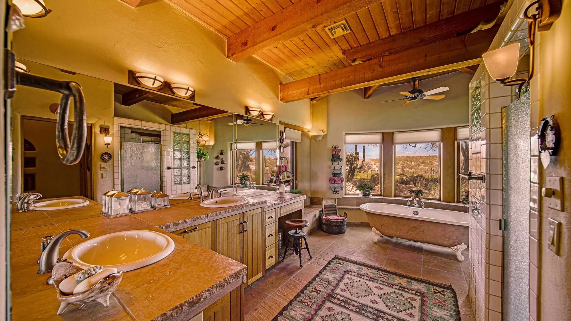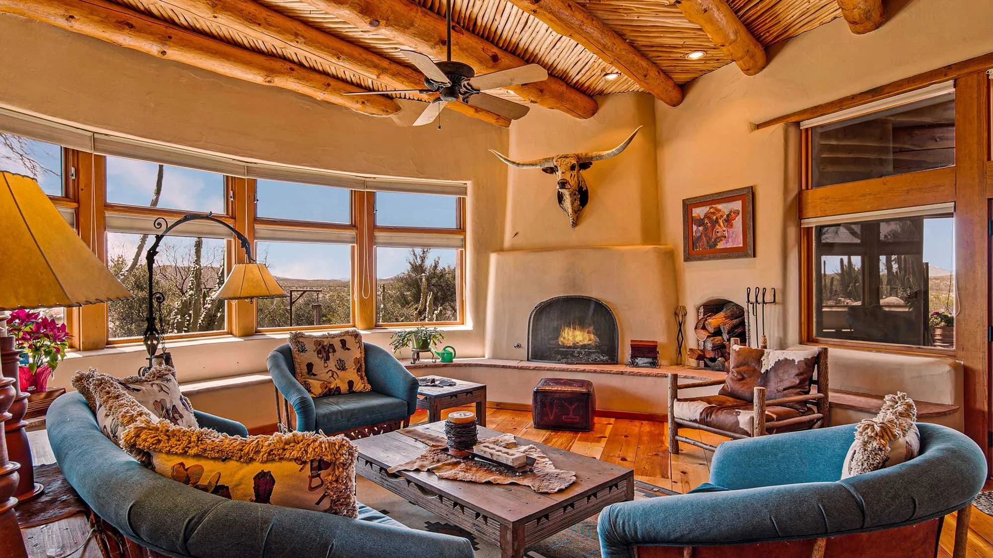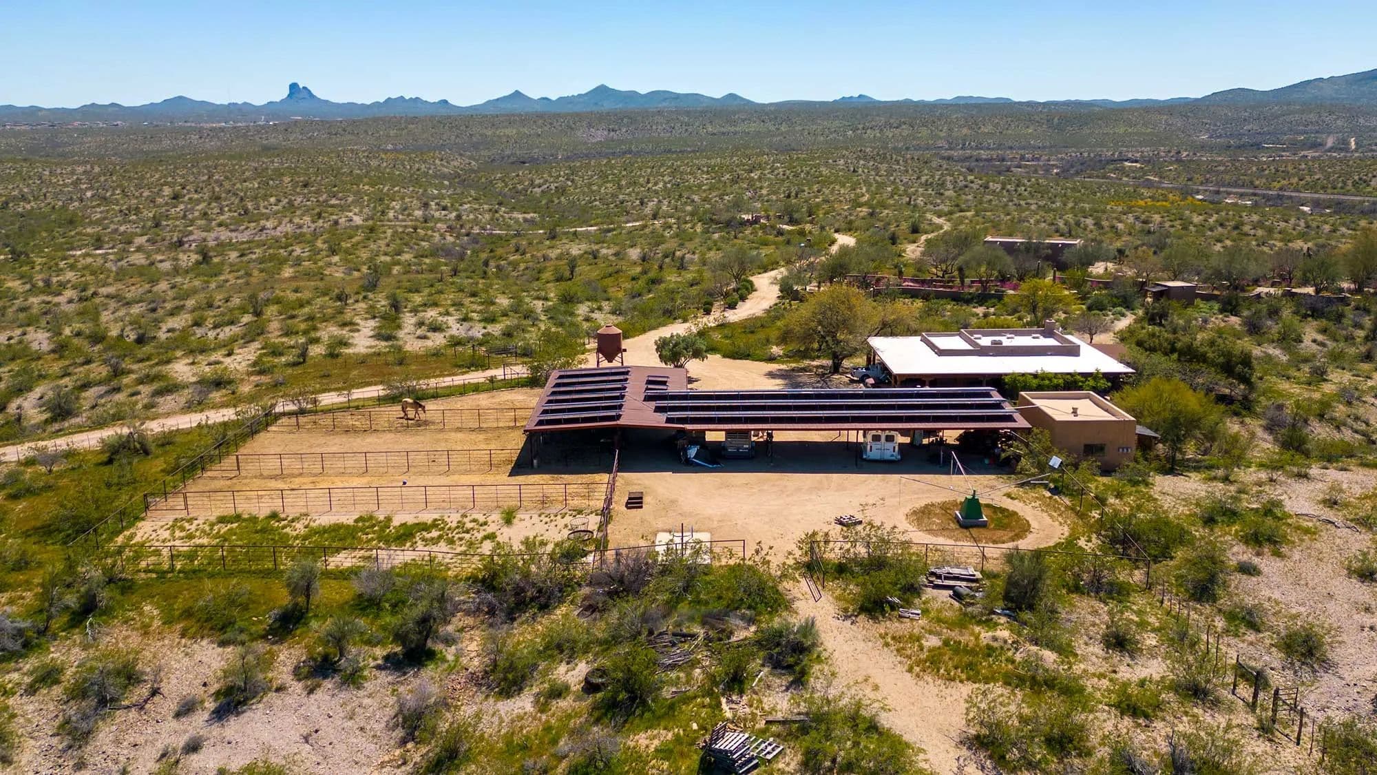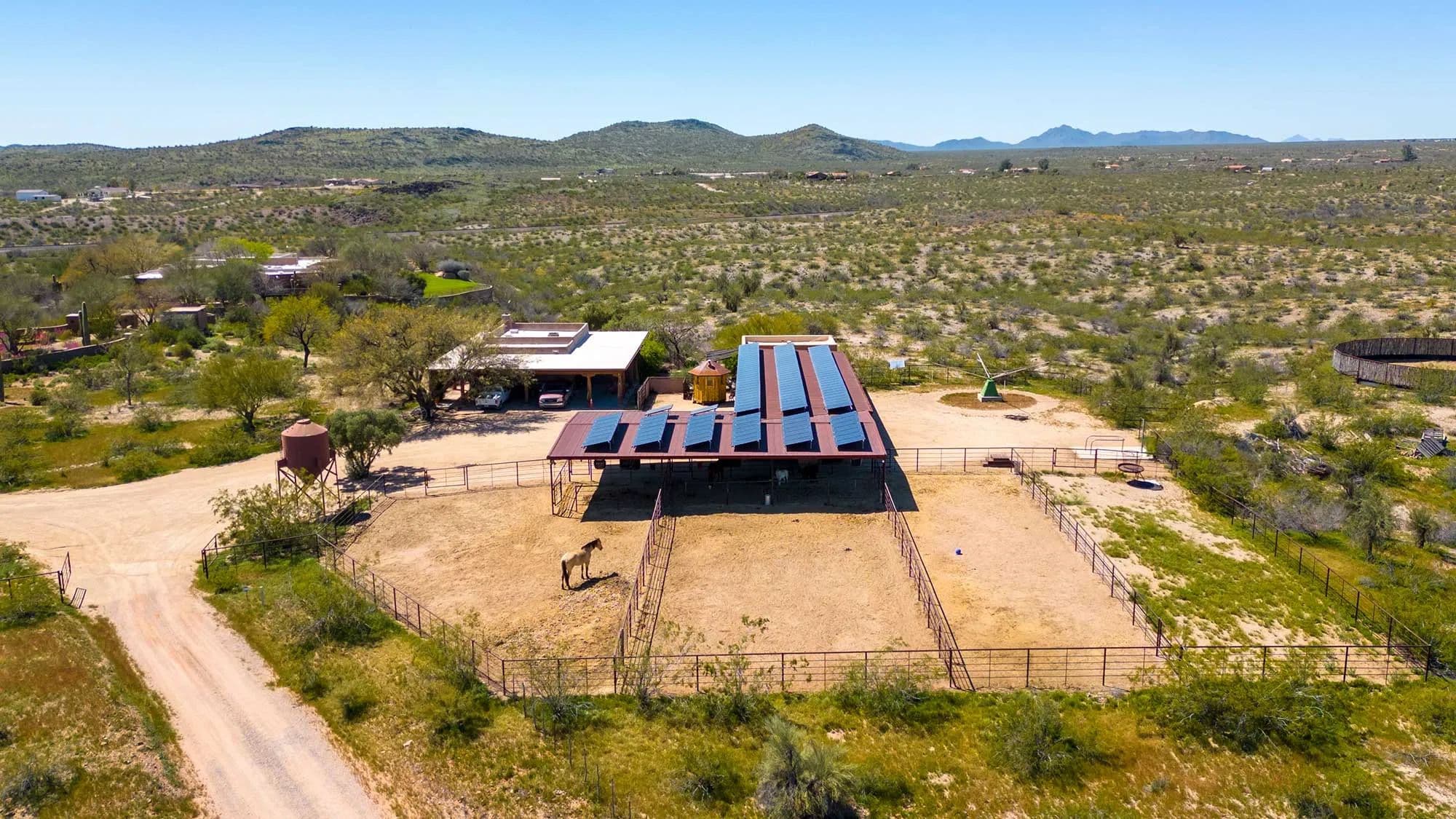 Powell Estate Ranch offers 400 acres of prized land with the ultimate in privacy, views and a premium estate home and related improvements. Located on a plateau providing 360° views, the home lies at the end of a county road minutes from Wickenburg, Arizona. The Santa Fe style home offers the utmost in southwestern living. The property is complete with an equestrian setup and separate Casita. The lower end of the ranch offers an outdoor arena and plenty of room for expansion. The area is comprised of 5 – 15-acre equestrian lifestyle properties and the 400 acres is ideal for continued development should one desire.