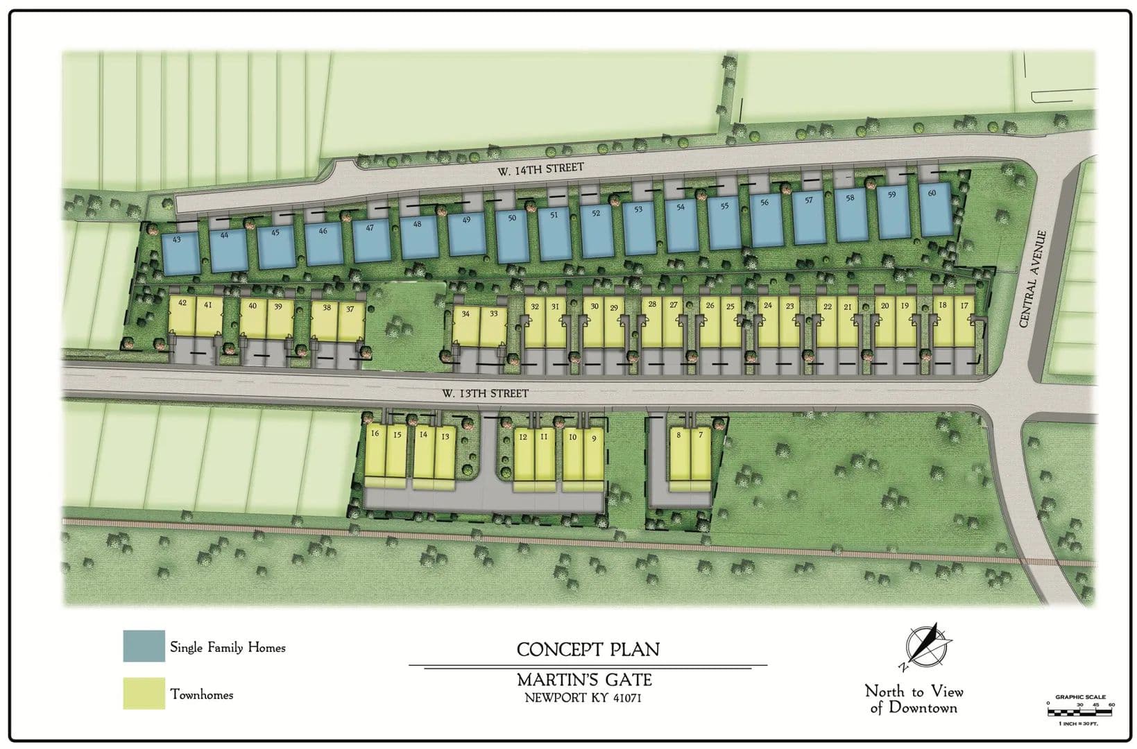 Build in Martin's Gate Community, the site of Homearama 2023 in Newport, Kentucky. With sweeping views of the City of Cincinnati, convenient location and just minutes to downtown Cincinnati, this fantastic new community is made up of finished, move-in ready homes and single family building lots. This lot is the perfect opportunity to build a custom house in this prestigious new development. Site ready and just waiting for you!
