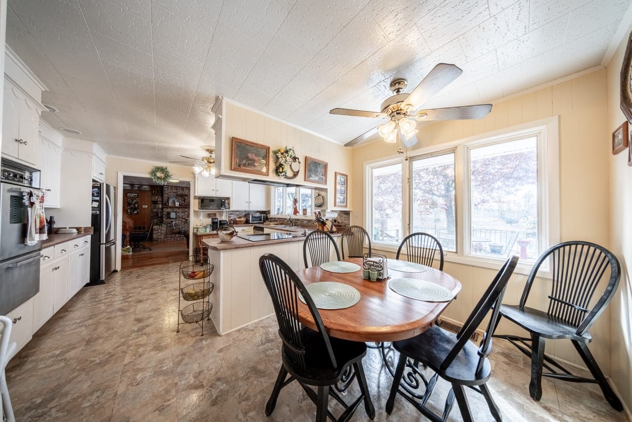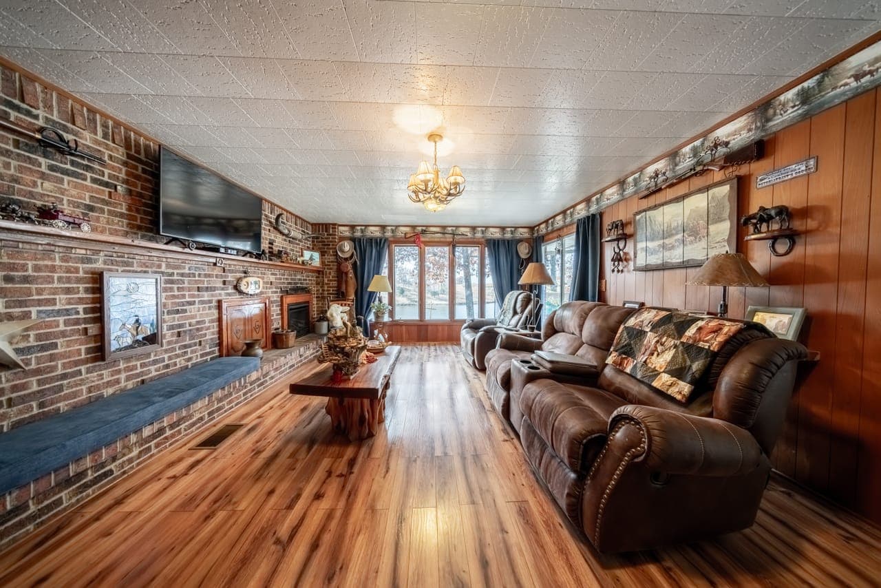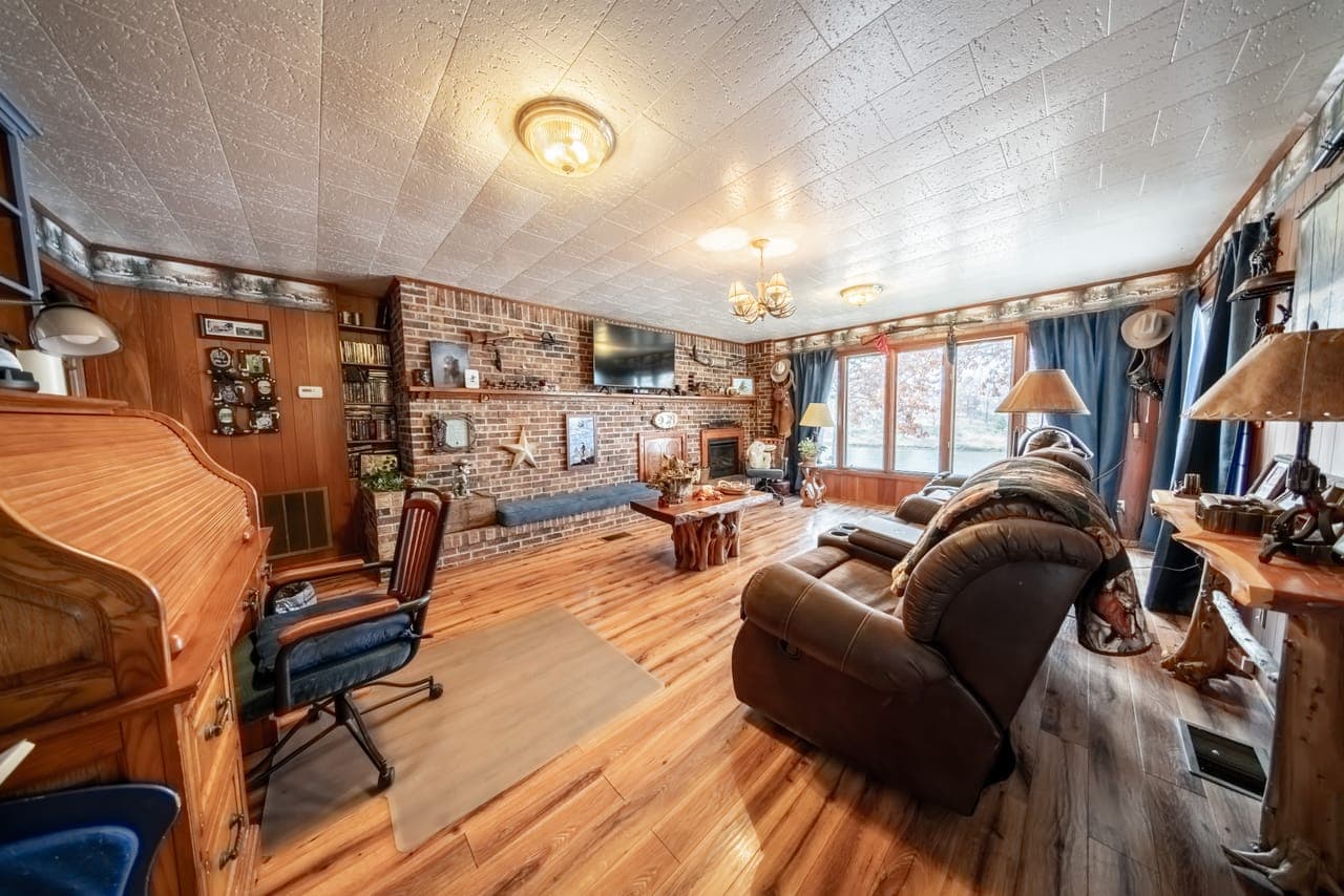 4 Spacious Bedrooms | 3 Full BathroomsLarge living room, formal dining, and a kitchen with eat-in breakfast areaCozy den with a gas-log fireplace (convertible to wood-burning)Heated & cooled basement – unfinished but framedMassive deck overlooking the lake – perfect for sunsets or coffee at sunriseUpdated with new flooring, exterior doors, and a custom fireplace mantleFiber internet, central heat & air, 2 backup gas furnaces, propane (tanks owned), NAEC electric