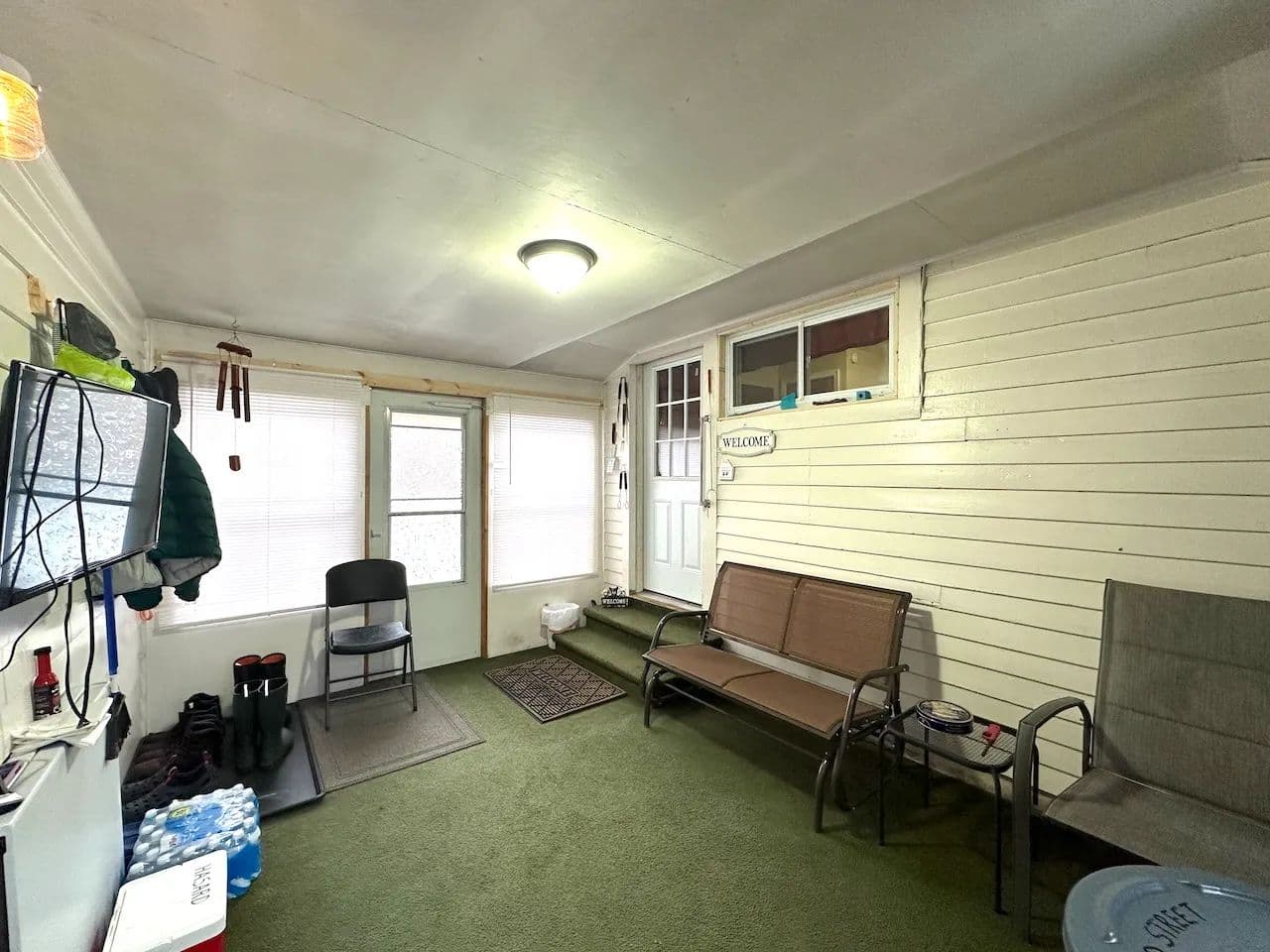 This home offers a wonderful blend of comfort, convenience, and scenic surroundings. Enter the home through the rear breezeway into a large mudroom-laundry area perfect for storing coats, boots, and everyday gear. Just off the breezeway, step out onto a relaxing patio, ideal for outdoor dining. The kitchen flows effortlessly into a comfortable dining area highlighted by a bay window which then opens to a warm and inviting living room perfect for family gatherings. A bedroom and a full bath complete the main level and provide convenient first-floor living.