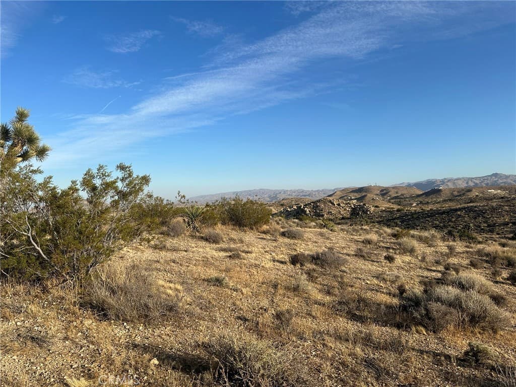 2.5 acres for sale in the hills of Yucca Valley. This property offers expansive views, lush, Mojave Desert, vegetation, Joshua Trees, rolling hills, and privacy. Located just off the paved road of Buena Vista Dr. Endless possibilities for your desert retreat and or campsite.