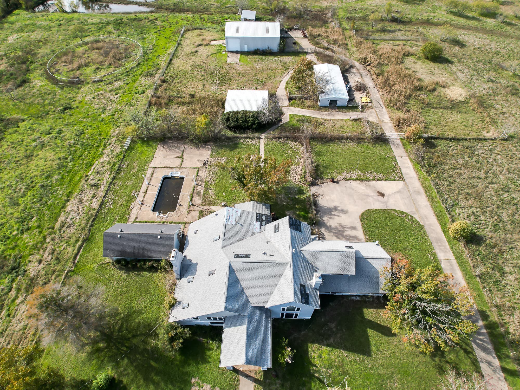 Welcome to this beautiful 30-acre estate, a canvas for your dreams in the heart of nature. Approaching the gated property, is a circle driveway with mature trees welcomes you to a world of opportunity. This 6-bedroom, 3 & a half bath home stands as a testament to possibilities waiting to unfold. With a large kitchen and butlers pantry for the enjoyment of cooking with plenty of space. Nestled among the acreage are four barns all connected with paved walkways and driveways, each whispering tales of agricultural pursuits. One barn can be RV garage and has an upstairs efficiency apartment with kitchen, full bathroom and washer & dryer hookups. The heart of the property is marked by an inground pool, a haven waiting to be rejuvenated. Adjacent to the pool, a 1000 square foot pool house stands with a kitchen and full bathroom, ready to be reimagined into a charming space for relaxation or entertaining guests. Enjoy the pond with fishing pier for the fisherman of the family.