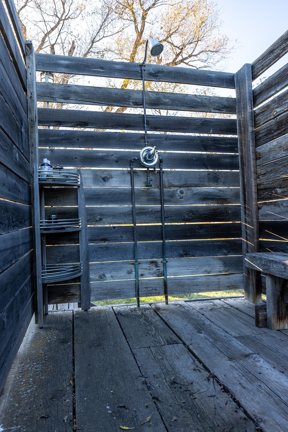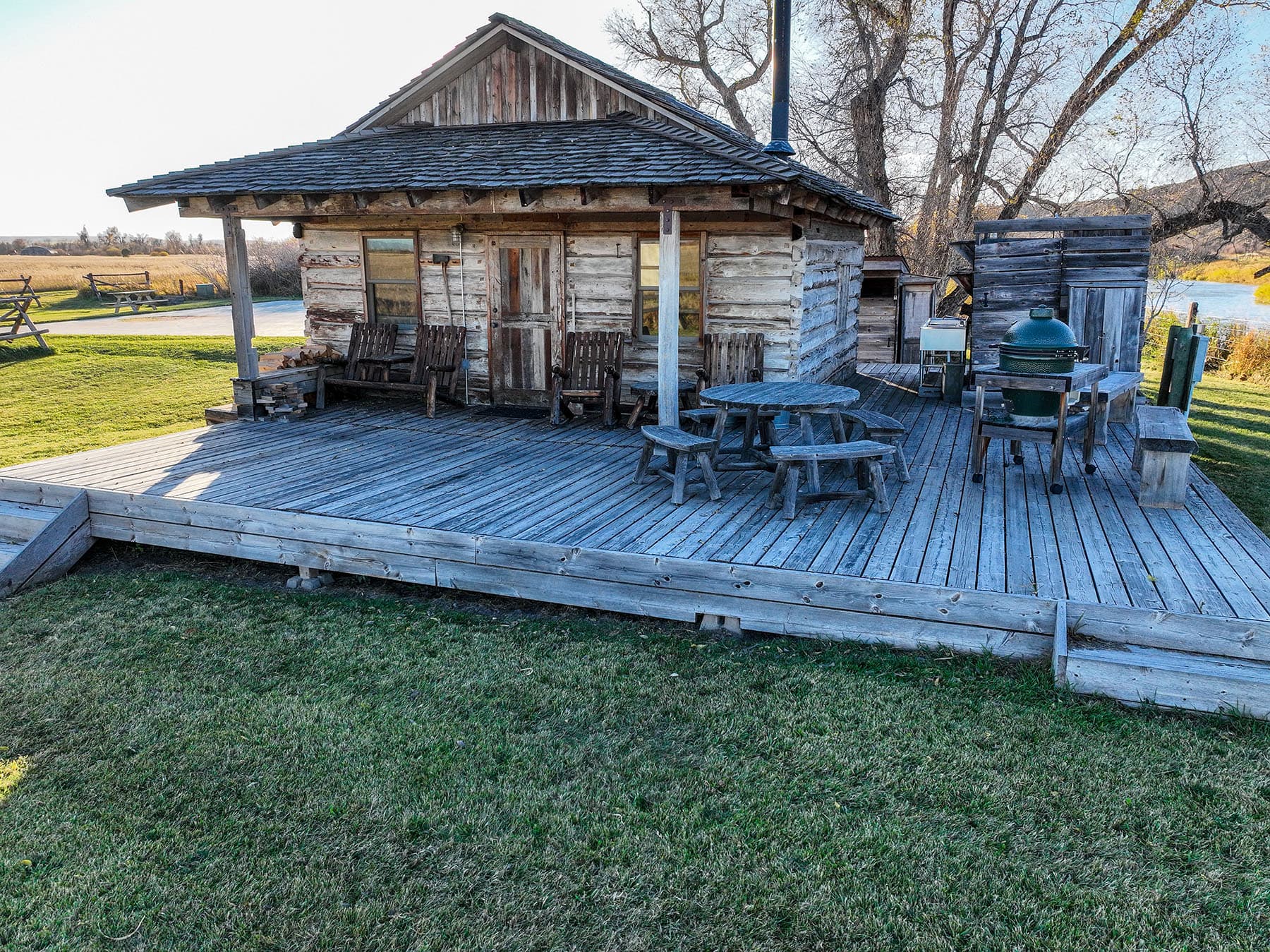 ~ Two small rustic cabins sited above the river and a bench overlooking the property