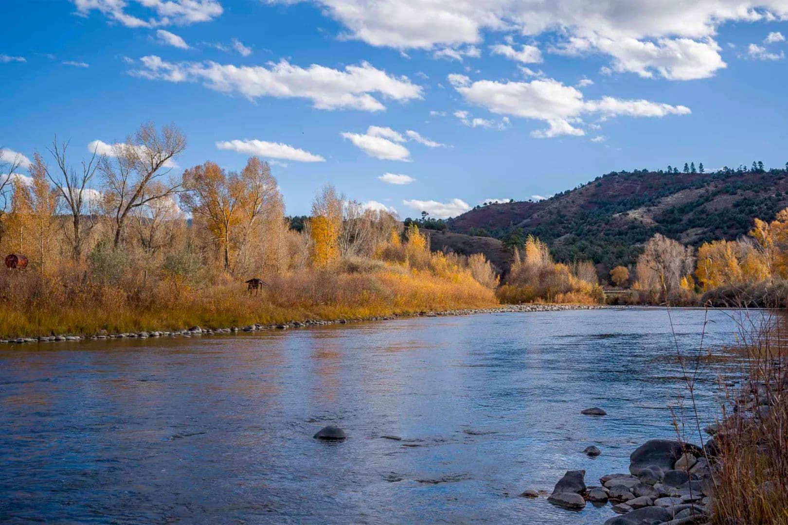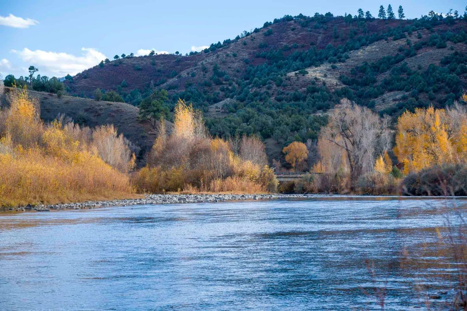 Diamond M Bar Ranch offers a freestone river fishery, private elevated homesite, and substantial irrigated acreage. Unencumbered by an HOA or conservation easement. This 102+/- acre property is highlighted by over three-quarters of a mile of the San Juan River, producing brown and rainbow trout with the occasional bass. The elevated mesa offers an excellent building site with panoramic views, including South San Juan's snow-capped peaks. Virginia Ditch delivers 2.5 CFS of senior, adjudicated water rights to an easily irrigated 38+/- acre pasture. The seller will also convey an additional 4.0 CFS of water rights. This combination of significant river frontage, topography, and plentiful water rights offer intriguing potential for improvements such as enhanced river structure, new ponds, and modern irrigation.