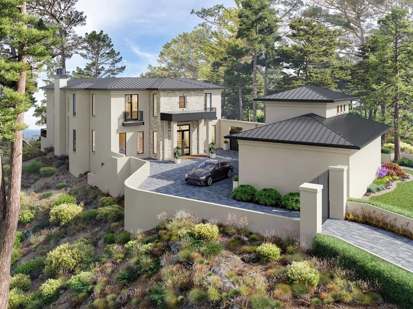 Located just around the corner from the world-famous Pebble Beach Lodge & Resort, this serene 1.58-acre ocean view estate parcel includes approved plans for a stunning house and guest unit with soaring ceilings and large windows to showcase the beautiful views. The property has a building permit issued for the construction of a two story 5,000 plus square foot home with a three car garage and guest house. The large great room has magnificent 23' high ceilings and both floor levels have an 11' plate line. Just a short drive from Carmel-by-the-Sea, Big Sur, and all the incredible amenities the Monterey Peninsula offers, this rarely available land in Pebble Beach is ready to build the estate home of your dreams.