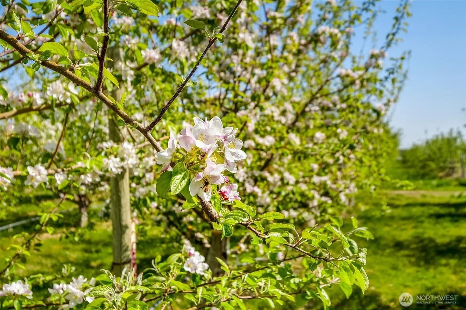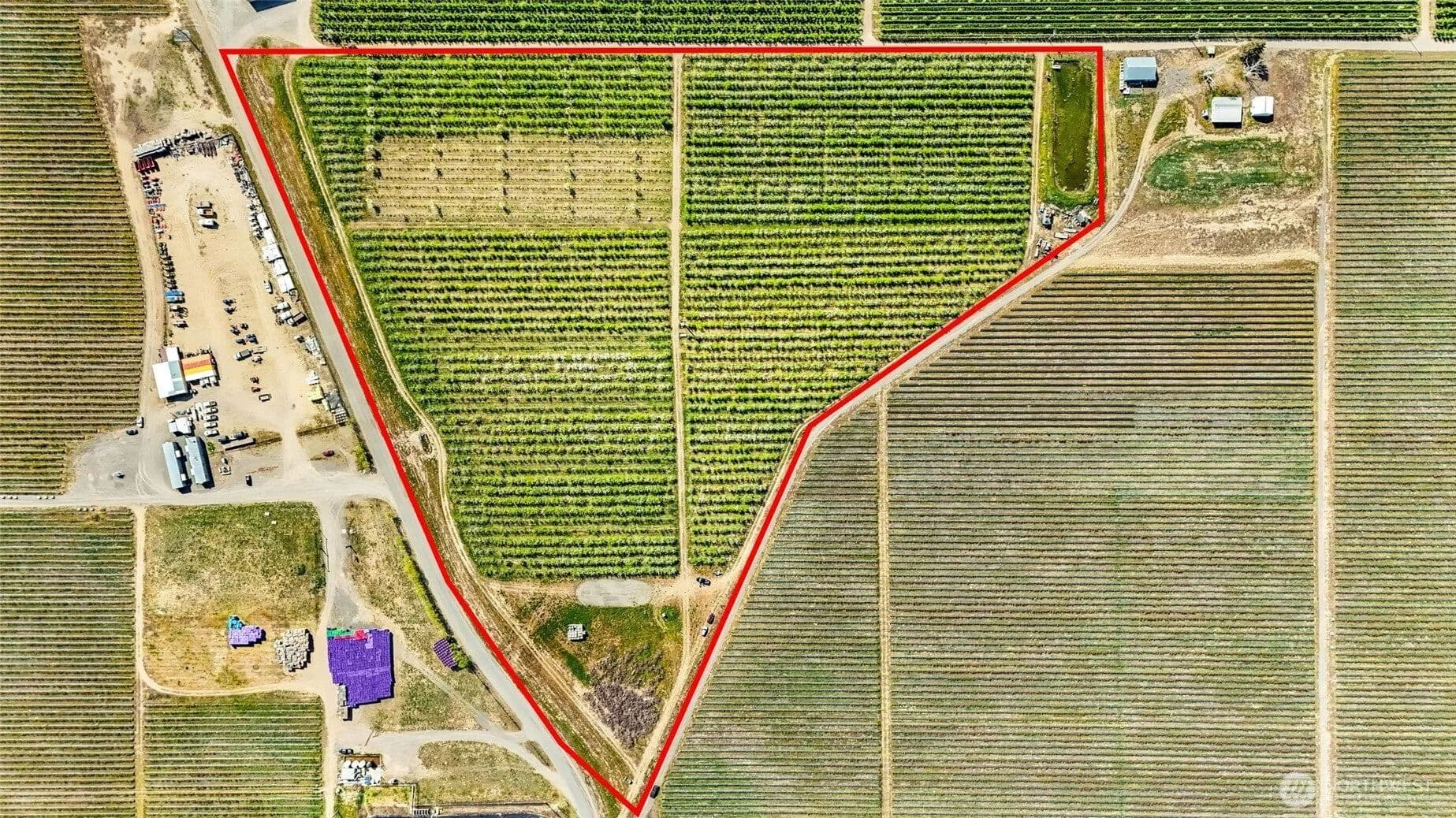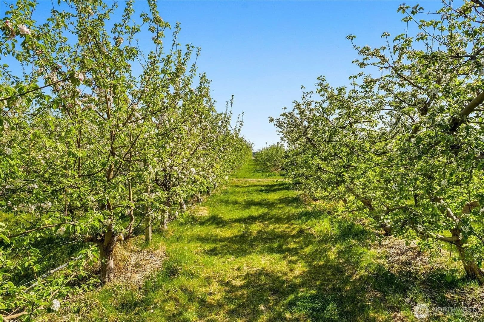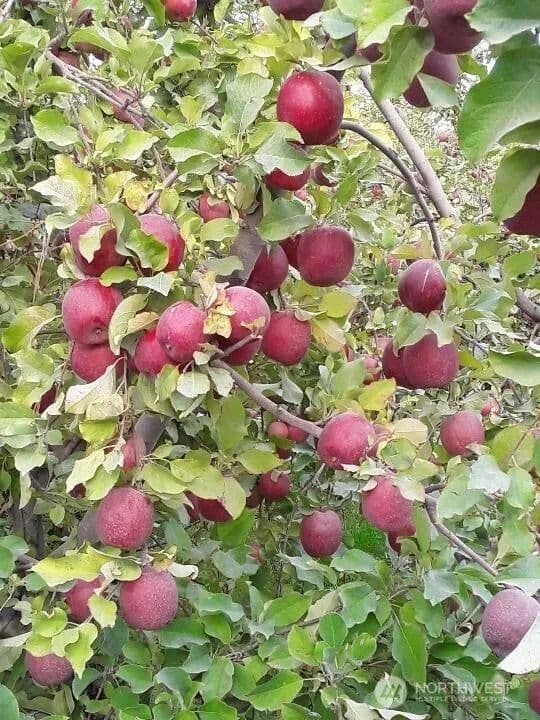 Certified Organic Apple Orchard. 14 acres of apples including 6.4 acres of Cosmic Crisp, 6.8 acres of Fuji, .8 acres of Granny Smith. Includes wind machine and large propane tank. Seller retains 2025 harvest or negotiable. Homesite availble. Views of the countryside. Equipment negotiable (see list in supplements). Prime location for growing apples! Gentle southern slope, partially frost free depending on weather and wind machine usage. Propane tank is negotiable and 10HP pump and trellis. Electricity at pump site. Sandy loam. NO rocks! Transferable crop insurance.