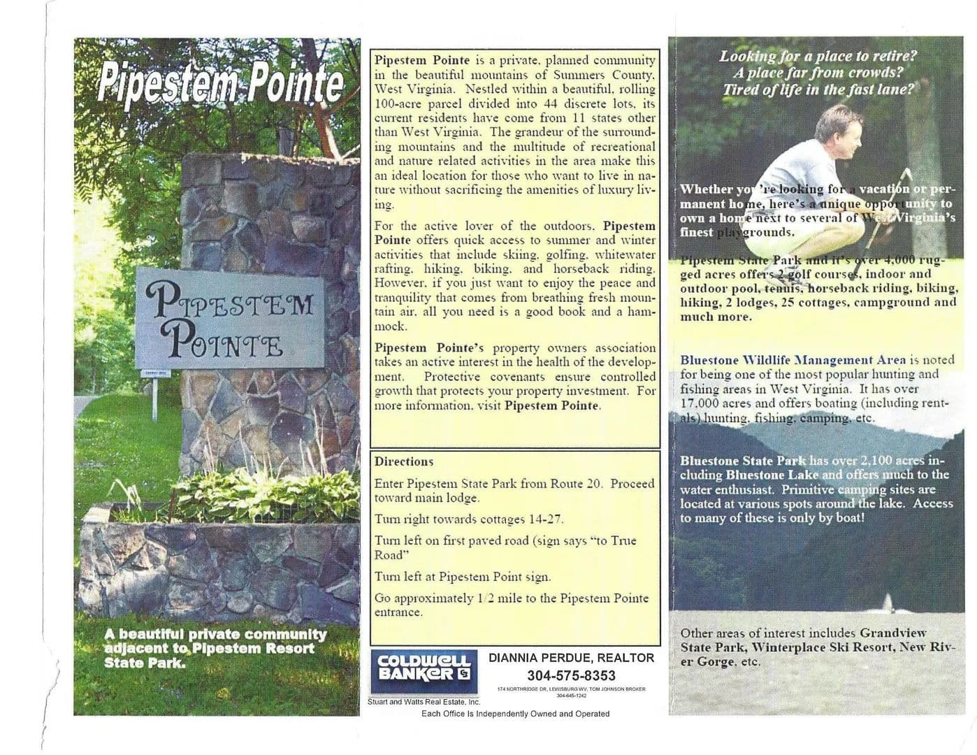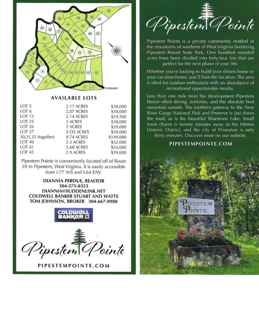 Lot 15 - 2.52 Acres (M/L) Located in Pipestem Pointe - Pipestem Pointe is a private, planned community nestled in the beautiful mountains of Summers County, WV. This 100 acre parcel has been divided into 44 discreet lots that offers quiet solitude in a park setting. The development is adjacent to PIPESTEM RESORT STATE PARK and offers an abundance of recreational opportunities. From horseback riding to hiking, zip lining to fly fishing, mountain biking, cross country skiing and a championship golf course with views for days. At Pipestem, there is something for everyone. Pipestem Pointe is also within close proximity to the NEW RIVER GORGE NATIONAL PARK AND PRESERVE, BLUESTONE STATE PARK AND THE HINTON HISTORIC DISTRICT. Visit https://www.pipestempointe.com for more information.