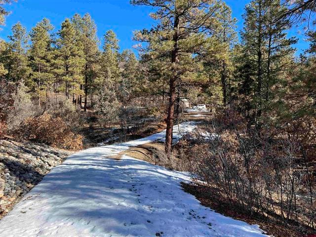 Exceptional 5 acre parcel in Elk Park Meadows. Private, gated community located approx. 10 minutes from uptown Pagosa Springs. Views of Broken off Point and distant meadows. Several fabulous building sites surrounded by mature Ponderosa Pine. Seasonal stream runs through the property. 400' Driveway built by SmithCo Enterprises with 10" of compacted gravel. Bank on upper side of driveway was stabilized using professional highway grade landscape fabric and 28 tons of River Rock. Water tap and 3/4" meter already installed, offering the new owner thousands of dollars in savings. Walk or Mtn Bike to National Forest access from the property. NF Trails lead into the Turkey Springs trail system. Must see and walk this fantastic piece of property.