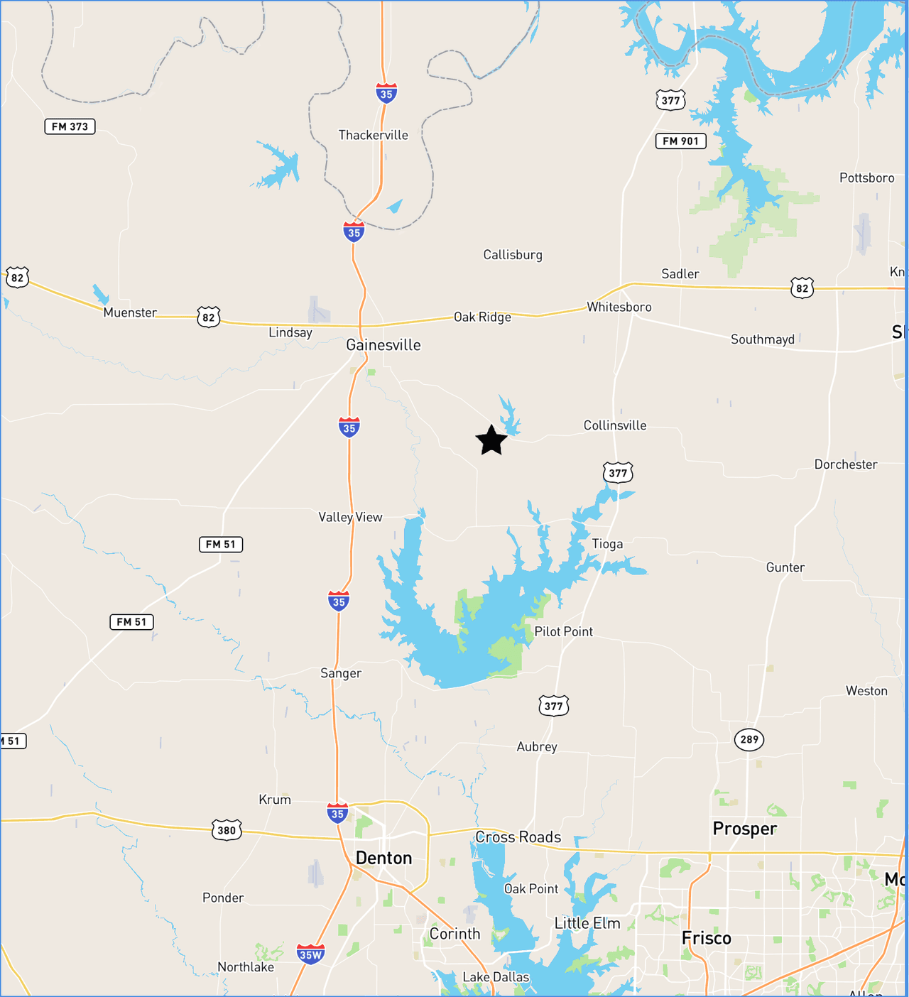 LOCATION: FM 3496 Cooke County, TX 2 miles to Lake Kiowa. 9 miles to Johnson Brancn Park at Lake Ray Roberts. 62 miles to DFW Airport. 20 miles to WinStar World Casino.