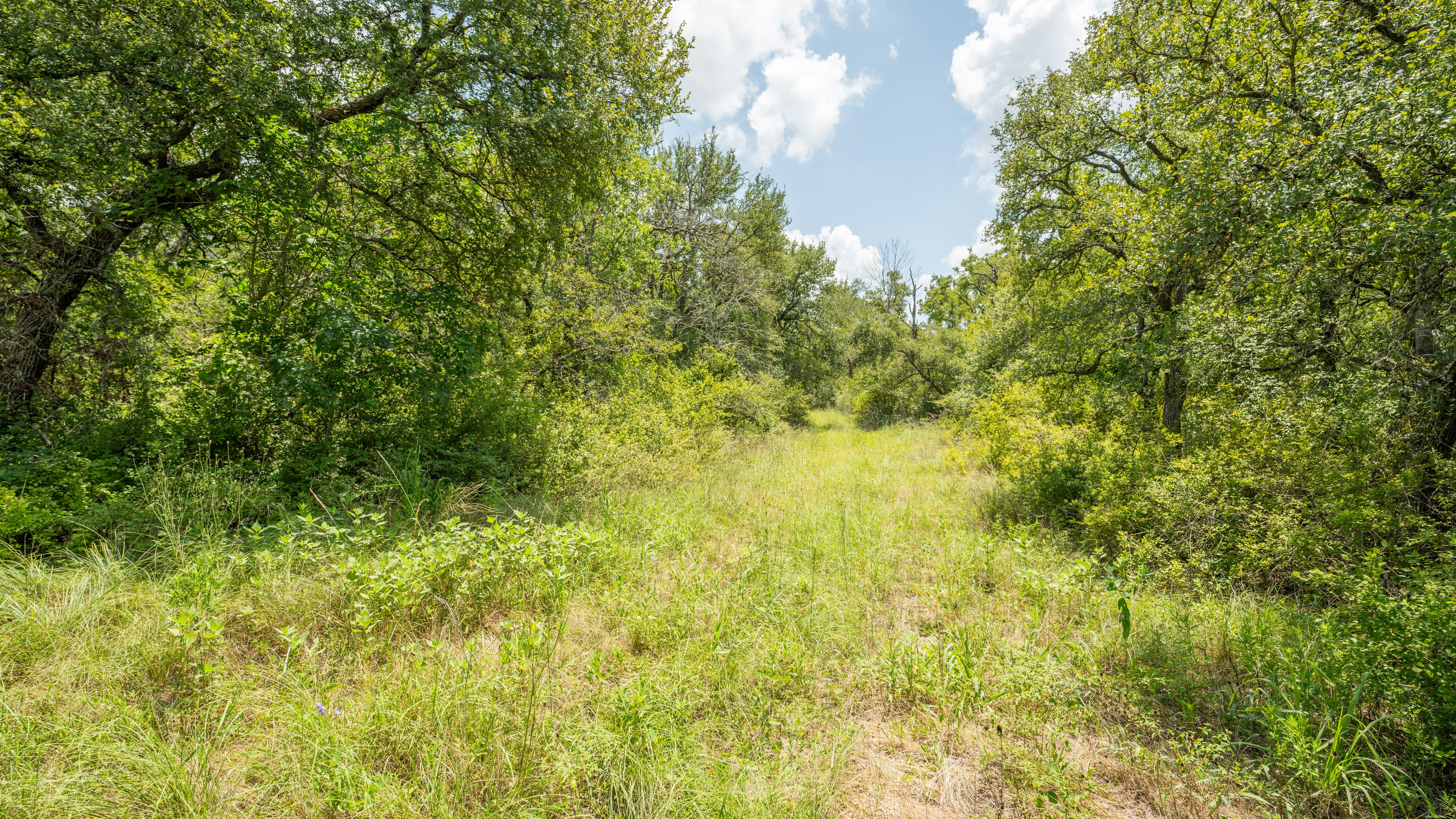 This property is 90% wooded with tons of post oaks, elms and some cedars. Clear out a section for a home, or leave it heavily wooded for more recreational pursuits. An area of roughly 1/2 acre has been recently mulched in order to provide a brush-free area to use on day one for a camper, cabin etc. Along with this clearing, an access trail has been cleared as well to get a truck or ATV back to the cleared area on the first day. Near the back of the property, a wet-weather creek cuts through the property, adding some character or providing a place to build a pond. Plenty of character on this property!