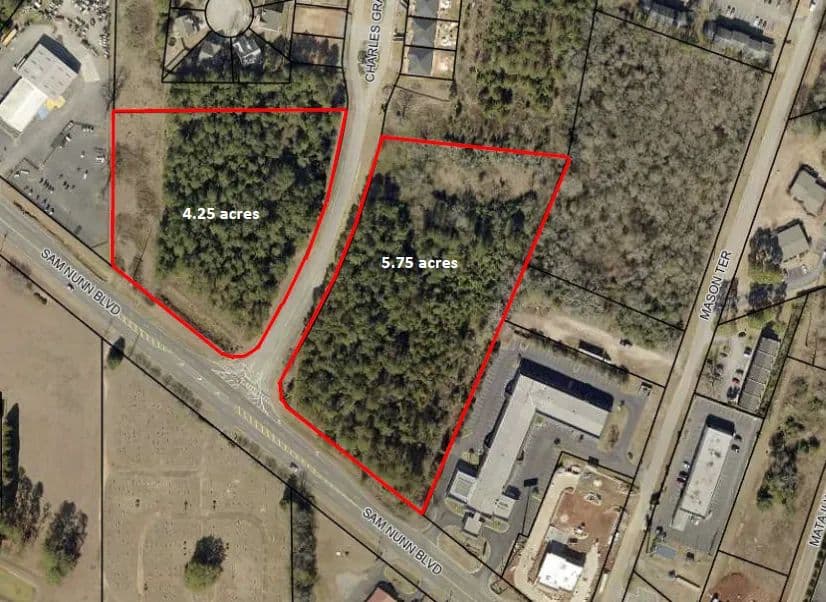 10 acres zoned commercial on Sam Nunn Blvd. Can be subdivided. City utilities and close to I-75. Surrounded by restaurants, hotels, and shopping.