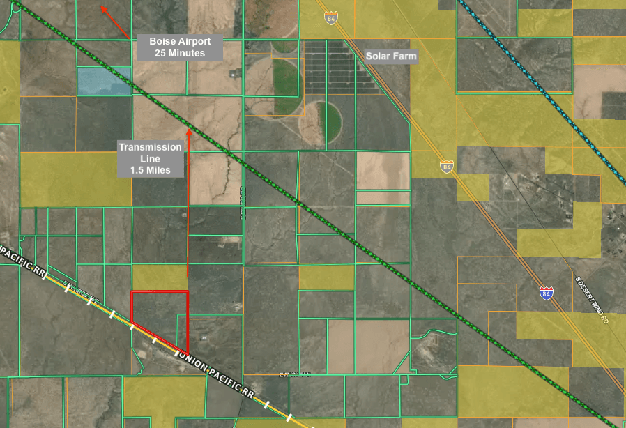 Investors, take a look at this level ground in Elmore County, Idaho! Rail access and M2 Heavy Industrial Zoning add to the value of this 142+/- acre parcel. Situated near Simco Road on the Ada County line, the property is surrounded by multiple industrial and solar projects. A major transmission line is only 1.5 miles away. The options are endless here; contact us today!