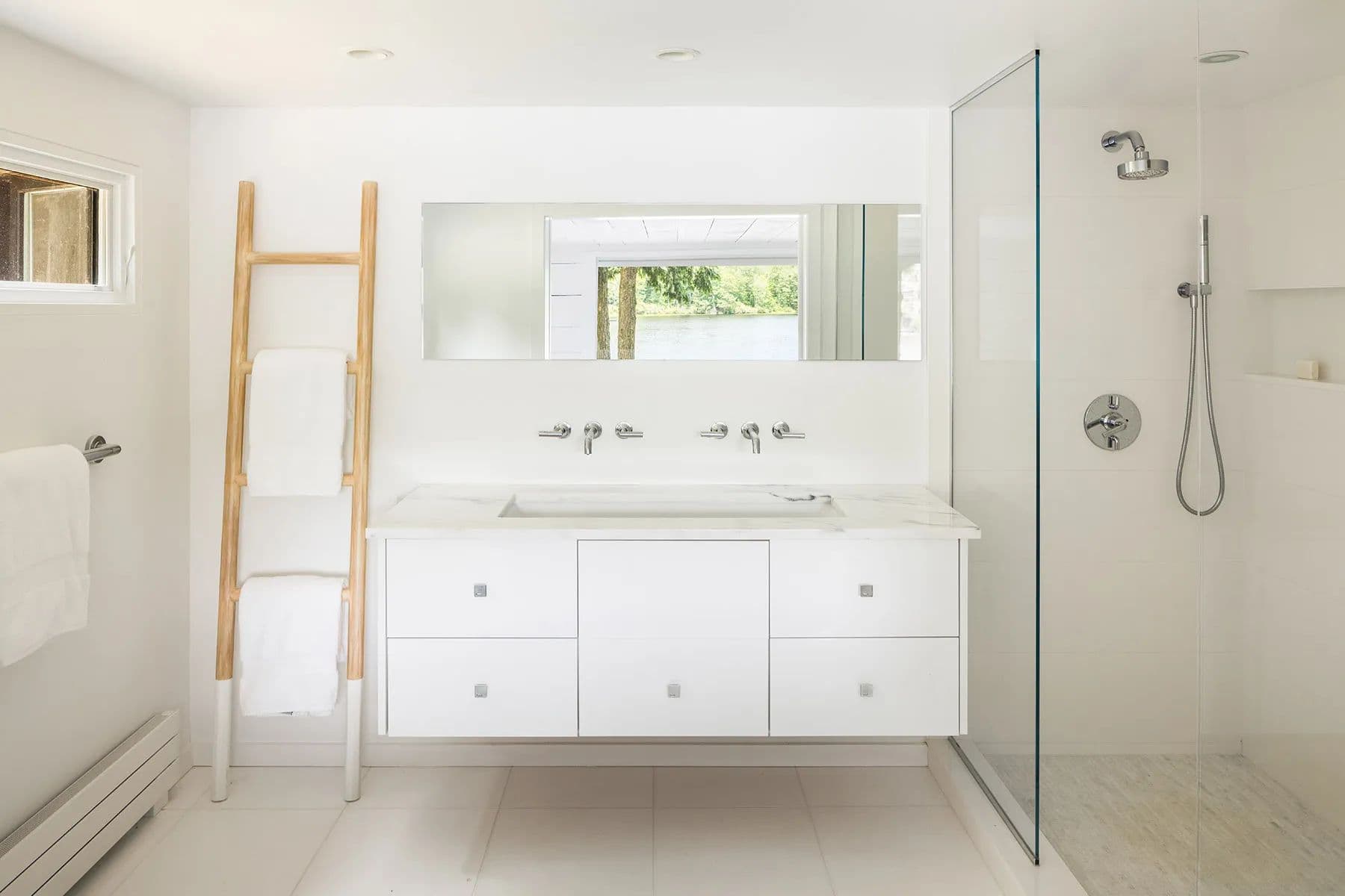 Atwater Pond is an exceptional retreat in the Berkshires of western Massachusetts. At the heart of the property lies the namesake 32-acre pond, which dates to 1892 when it was dug by hand and horses. More than 130 years later, the pond anchors the property, and the improvements and owner’s homes are clustered on its eastern shore. The house and guest house recently underwent extensive renovations, and the immaculate structures have an effortless, contemporary aesthetic that honors the property’s casual country roots while incorporating modern conveniences.