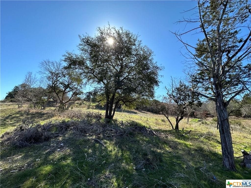 Over 3 acres with rolling terrain, native trees, and amazing views of the surrounding hills and Stillhouse Lake! Water and electric in place. Ready to build your dream home in Salado ISD!