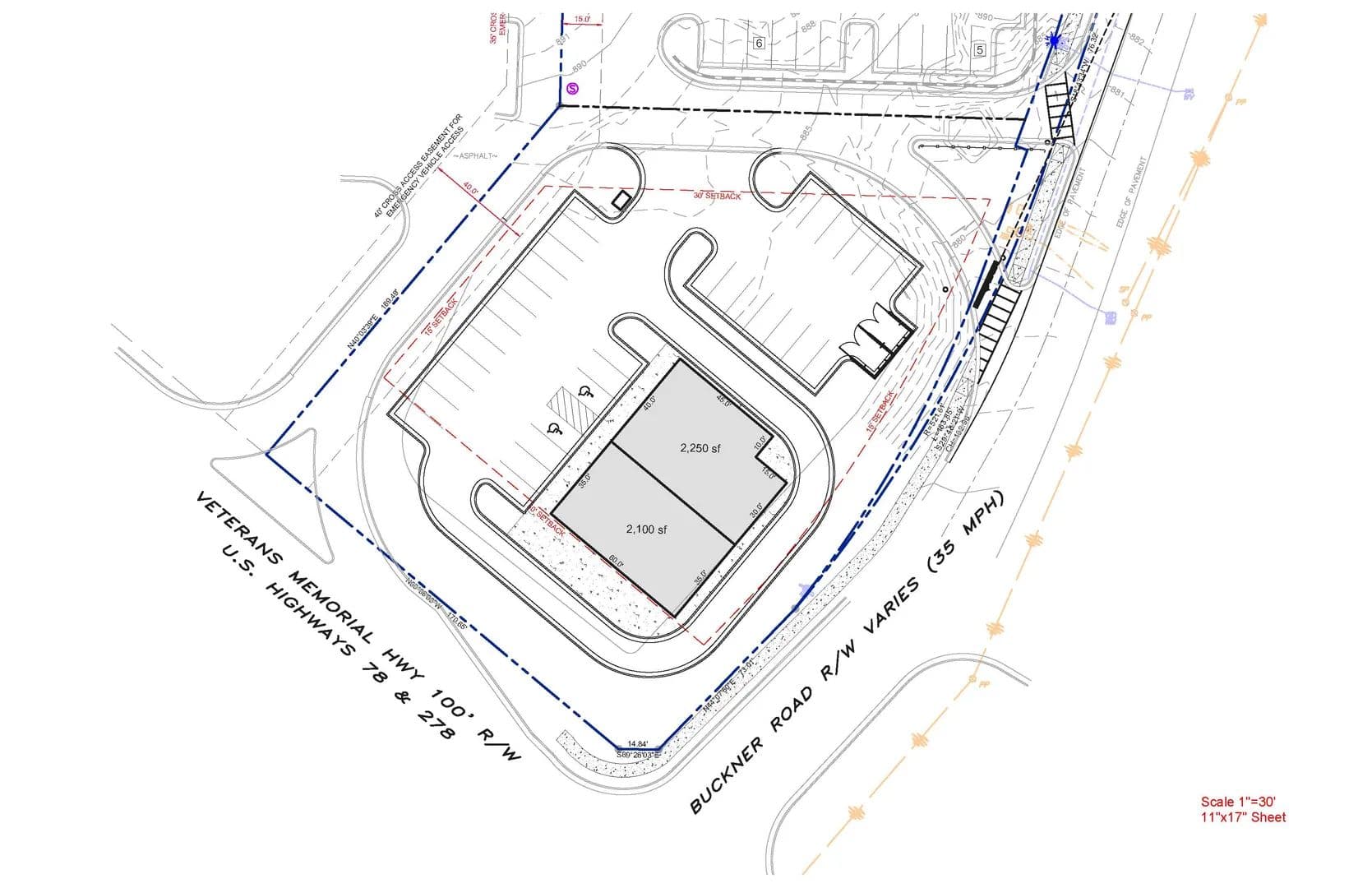 0.94± Acre Retail Development Site Master storm drainage installed for entire site All utilities All off-site DOT’s installed Automotive use is restricted 178’± Road frontage on Veterans Memorial Highway (US 278) 278’± Road frontage on Buckner Road Topography: Above road grade Zoned: Neighborhood Retail Commercial District