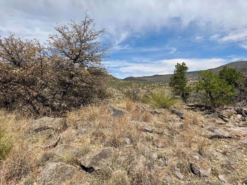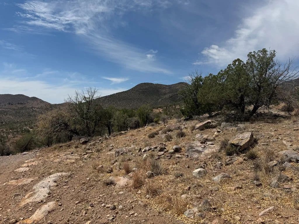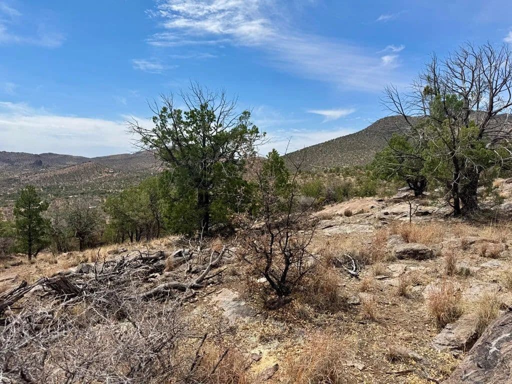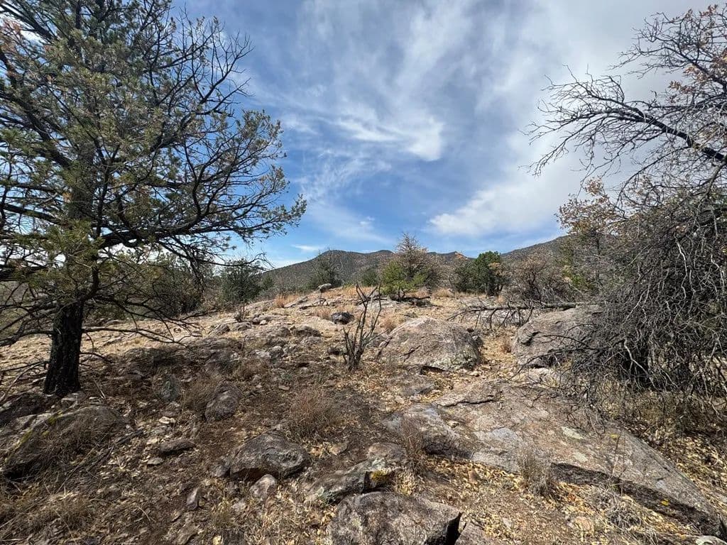 This elevated 5.65-acre tract sits on a corner lot with incredible views. This corner lot sits on a ridge with Pinon pines and lots of rocks to climb, with a power pole to hook up electricity. This is a great spot for bird watching, camping, hiking, and stargazing. Get on your adventure boots and check this beauty out.