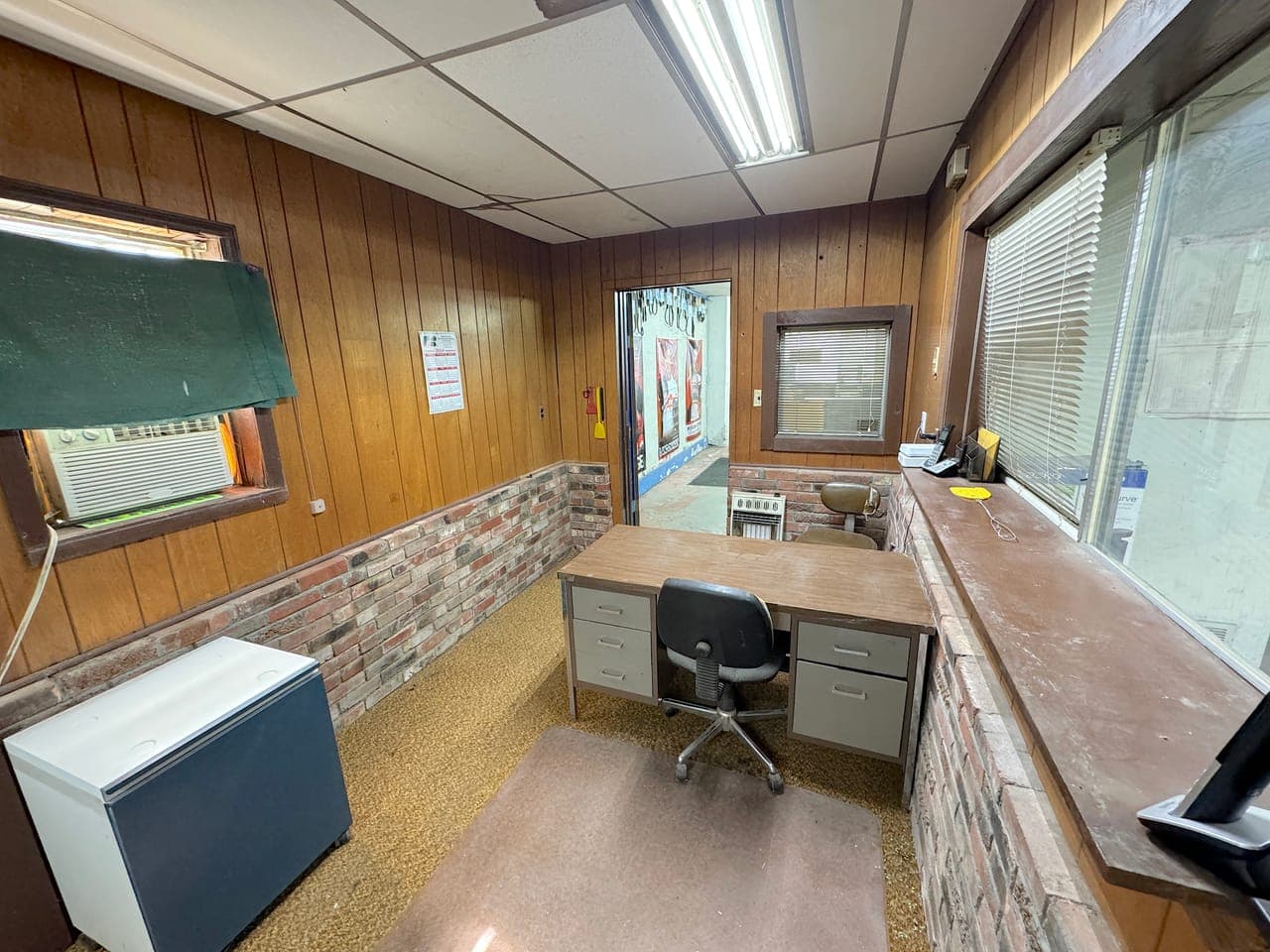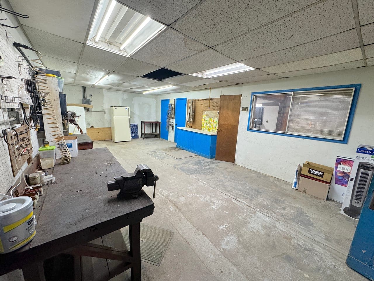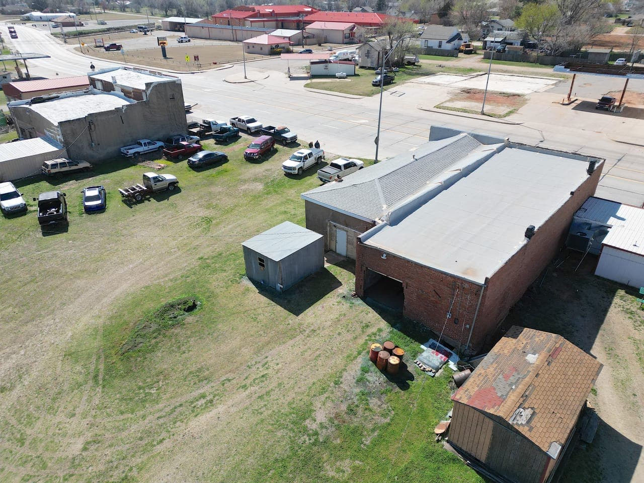 640 square feet of store front, 153 square feet of office space, 410 square feet of climate controlled workshop, 1,635 square feet of shop with 2 large bay doors on the west side facing the highway and one bay door facing the east towards the alley. Property comes equiped with air compressors with lines plumbed throughout the building, single vehicle life, automotive parts inventory, as well as office furniture. The large shop area is also heated to be able to work inside year round. The property is 4 city lots which equals +/- .38 acres. For more information or to schedule a showing contact Trey Pearcy with Great Plains Land Company at (405) 545-0985 .