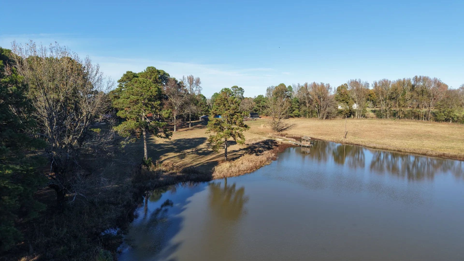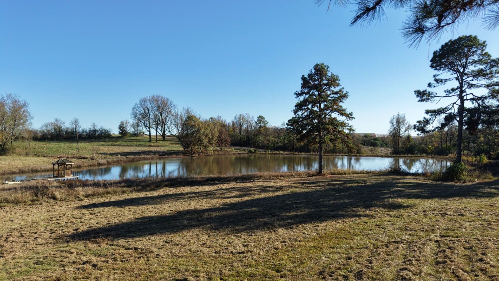The acreage is a great mix of open pasture with large shade trees and a nearly 3± acre spring-fed pond. The pond is stocked with Bass and Crappie, has a dock to fish from or relax and enjoy the scenery, and also provides a great water source for your livestock.
