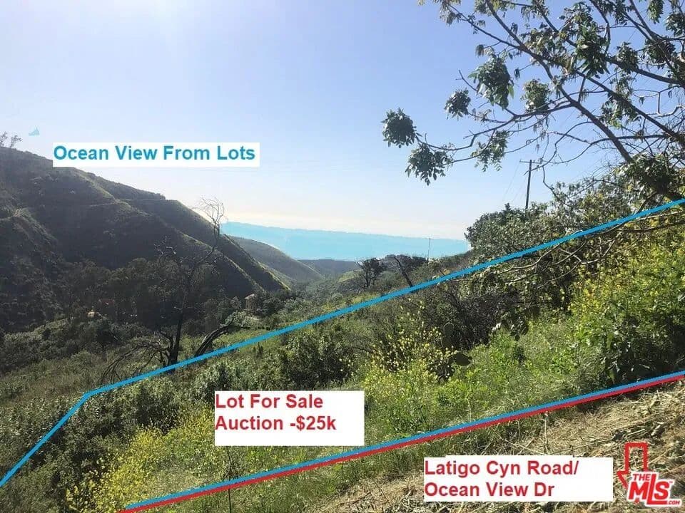 Malibu Land AUCTION! BIDDING OPEN: Bidding ends November 22 , 2025. Amazing ocean view downhill Lot located 3 miles up Latigo Canyon Road from PCH and ocean. Only 5 miles from center of Malibu and Pepperdine University. There are no reports or studies completed on this property. Water and electricity are in street. Easy to see anytime. 50 feet by 111 feet downhill lot with beautiful views through Latigo Canyon to the ocean below. Great price for a lot in area with many homes selling from $800 to $1400 per foot. Tremendous Opportunity to build a home and live in Malibu. See photos section for detailed aerial maps to property. Text Agent for Auction Details. Parcel Number - 4461-010-026