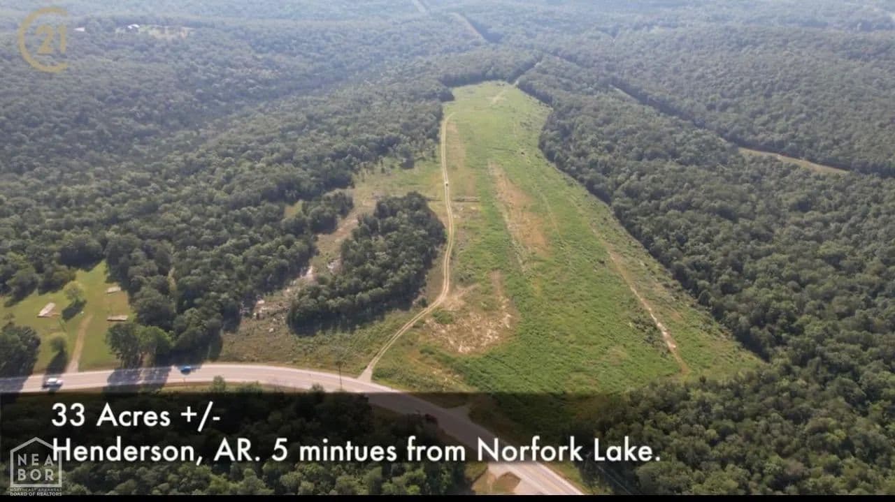 This is a rare find! Approximately 33 acres near Lake Norfork partially developed and ready for building 10 cabins. This is a must see! Henderson, AR ** The address listed is incorrect it is directly across the road from the address listed. 33 acres of prime real estate with a precision leveled air strip ready for a plane enthusiast. This property has a ton of development already complete including Well installed field lines installed 10 waterlines for 10 cabins already ran and ready to build We are aggressively looking for someone to take on this project and make it their own Airstrip is 1200 feet uphill landing and downhill takeoff. With slope it is equivalent to 1500 feet on level ground. This 33 acres over looks recreational Norfork lake that everyone around the state of Arkansas travel to for their weekend getaways.