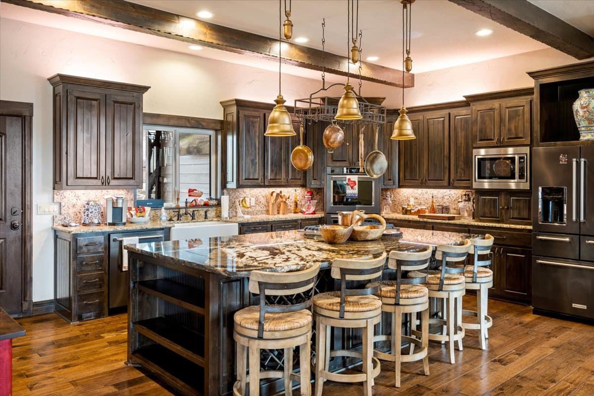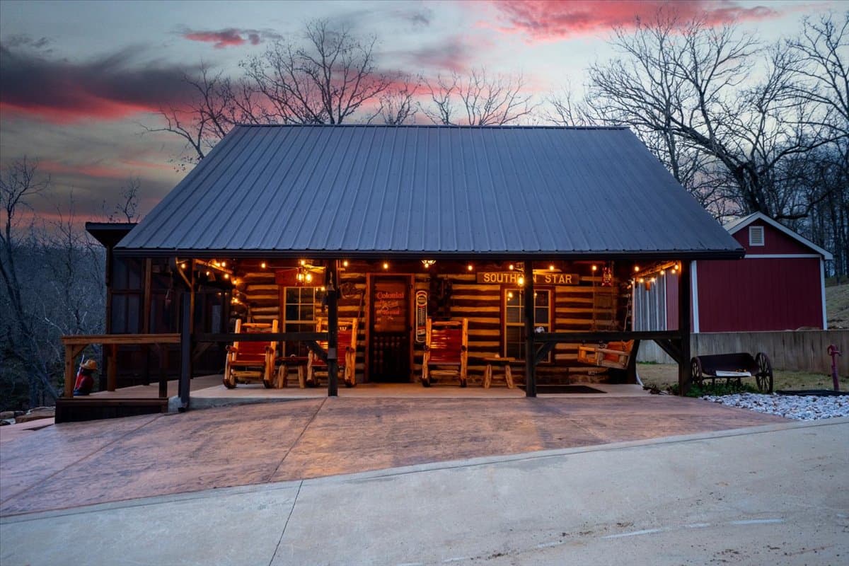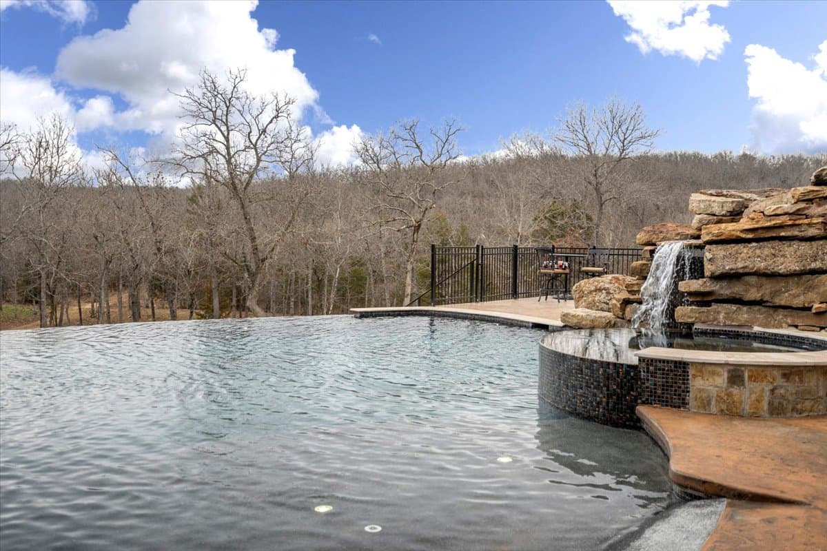 EXECUTIVE LIVING ON 98+/- ACRES ONLY 1 MILE TO LAKE TENKILLER AND AN HOUR FROM TULSA WITH A 5,923 SQFT LUXURIOUS LODGE, 1,300 SQFT HISTORICAL SETTLER’S CABIN, RED-IRON 30’X60’ SHOP, ½-ACRE POND, CUSTOM INFINITY POOL WITH JACUZZI HOT TUB AND GROTTO, HUGE OUTDOOR KITCHEN, SUNDECK, PUTTING GREEN, AND MANY MORE ONE-OF-A-KIND FEATURES. This picturesque Oklahoma landscape includes a gorgeous rock-bottom creek, miles of trails, and huge pond, all of which borders thousands of acres of Gruber State Game Management Area and Cherokee State Game Refuge Land. With Lake Tenkiller as a backdrop, this property is truly a gentleman’s recreational paradise with plenty of amenities to keep your family and friends happy and entertained! This high-class lodge is expansive with meticulously crafted living space and architectural excellence, featuring 2 master suites, 2.5 bathrooms, an oversized loft that can be converted to a third bedroom, office, sunroom, mudroom with shower and automatic doggy door, and dining porch with retractable screens. High-end finishes can be seen throughout the entire interior of the main house, as it has gorgeous wood floors, granite countertops, venetian blinds, vaulted ceilings, multiple built-ins, custom all-wood backlit closet in master, and a walk-in gun safe, to name a few. Within the last year, the entire exterior has been painted and stained, and the roof was sprayed with 4 coats of Bronze Metal rubberized membrane coating. The outdoor entertaining area consists of stamped-concrete sundeck, outdoor kitchen with double sinks, garbage disposal, 2 beverage refrigerators, 50-lb ice maker, infrared grill, and two 80-inch professionally installed TVs, as well as 5-hole putting green with built in drainage and a custom pool with beach entry, 20’ infinity edge, 10-person jacuzzi hot tub, waterfall, swim-up bar with built-in stools, grotto with lights and speakers.