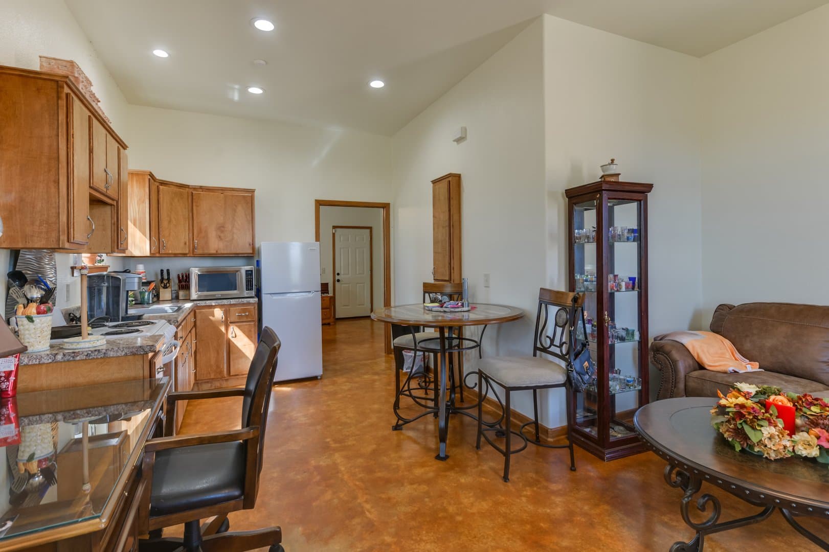 Ranch Home: The ranch home has an open floor plan perfect for gatherings with family and friends. There are 3 bedrooms and 2 baths. In addition, there is an “in-law suite” attached to the other side of the two-car garage.