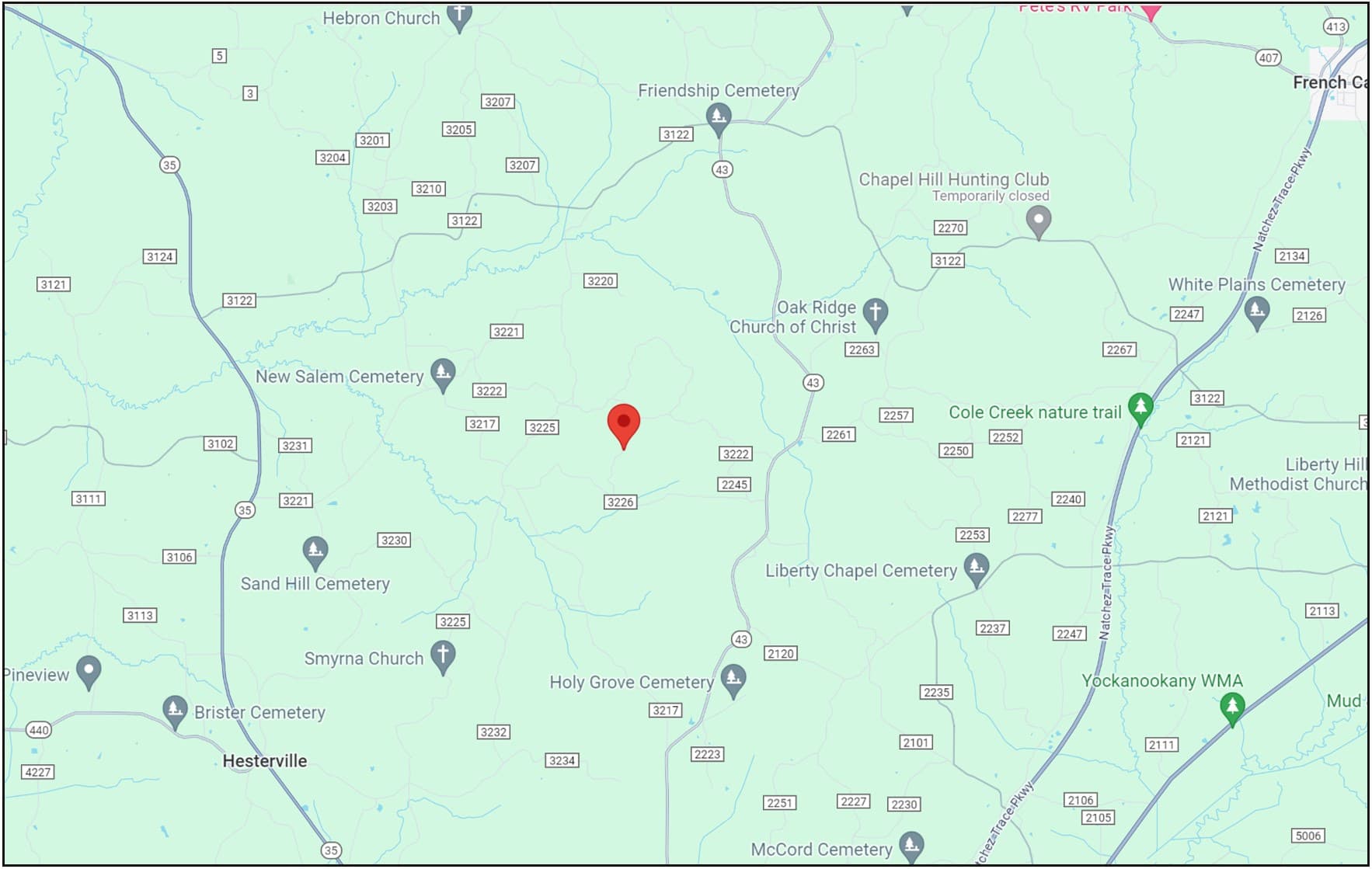This 255± acre Attala County property is a must-see recreational hunting tract! Attala County Road 3222 divides the western 60.67± acres from the body of the property. The road is in excellent shape and well-maintained by the county. The property boundaries are well defined as age variations in the timberline, and grown ranges are clearly identified and painted lines in most areas. The timber consists of various species, 10± acres of 18-20-year-old pine left from the precious cutting that appears to be healthy, 20± acres of mixed hardwoods that run along the SMZ (stream management zones), 180± acres of 4–5-year old planted pine and scattered bottoms. Some hardwood areas provide food sources for the game, and the survival rate seems strong. The property has seven well-planted, established wildlife food plots with large shooting houses of around 15± acres and 10± acres of open area and roads. The property is abundant in deer and turkey, and the road system is extensive throughout. There is an area with covered storage for your camper or equipment. Public water and power are available. This is one of those tracts you need to see to appreciate, and you will be kicking yourself if you let this one get away! Call The Land Man today!