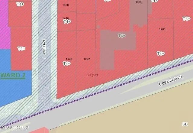 2 Beach Front Lots Zoned for Commercial Development (T4+) with approximately .52 Acres located on a Hard Corner on Highway 90 and 20th Ave in Gulfport. Located Right across the street from the new MS Aquarium, Jones Park and the Gulfport Small Craft Harbor. Property was previously used as a Hotel site but has many possibilities. Please refer to the Chart of Permitted Uses under T4+ Zoning.