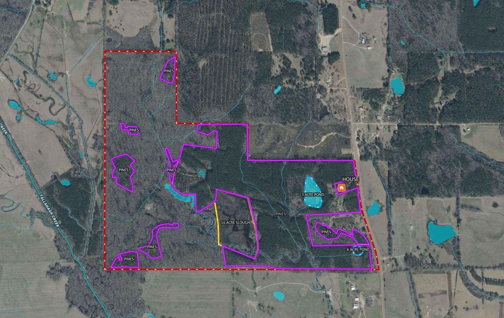 The land itself is exceptional, consisting of 121± acres of mature pine plantation, 162± acres of mixed hardwoods, a 16± acre duck slough, a 3± acre pond, and a smaller 0.6± acre pond. Its diverse habitat supports fantastic deer, turkey, and small-game hunting, making it ideal for sportsmen and outdoor enthusiasts. Whether envisioned as a full-time residence, a recreational or hunting retreat, or a potential short-term rental such as an Airbnb, the property offers outstanding versatility.
