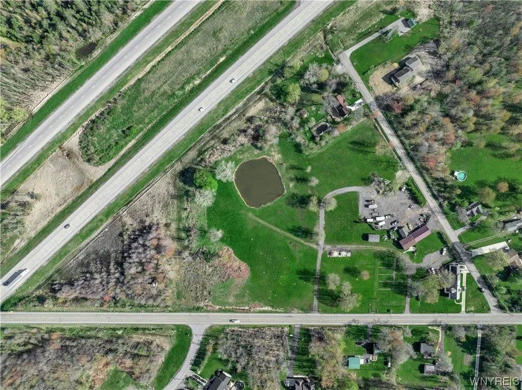 Come check out this ranch style residence boasting 10 +/- acres of lush and maintained land including a lovely pond. Formerly a landscaping/nursery business with a live-in suite, the residence offers a living area with two garage/storage spaces. Detached from the residence is an additional garage with an office space. This unique property has about 1600 ft of road frontage on Lakeview Rd and 500 ft of road frontage on Shultz Rd along with multiple driveways and a parking lot. Come make this property your home, business, or next venture! Also listed as B1469601